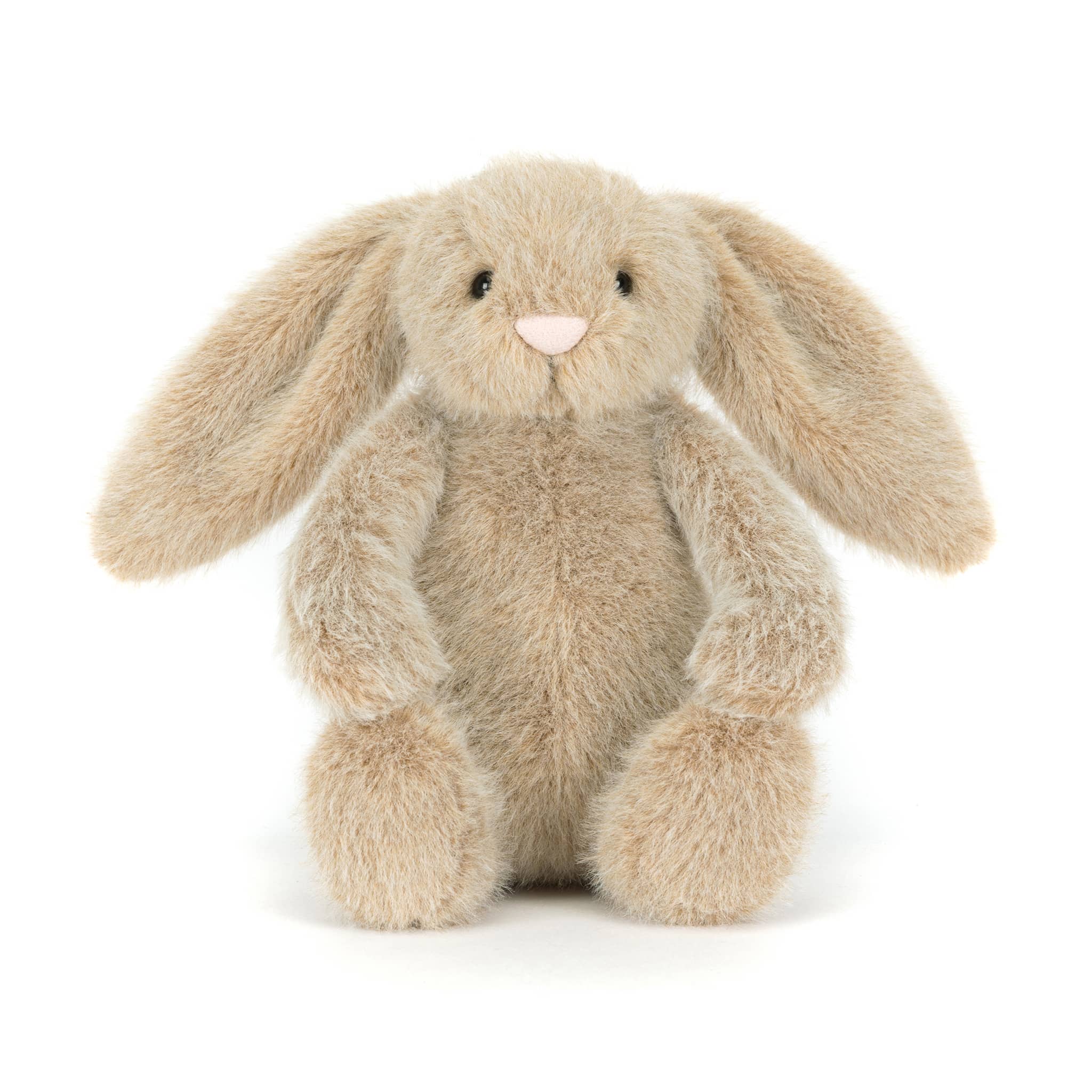 Perfect for snuggling during nap time or playtime. Makes a great gift for toddlers and kids. Suitable for ages 12 months and up due to fiber shedding. Remove all packaging materials before giving this toy to your child. Hand wash only, do not tumble dry, dry clean or iron. Not recommended to clean in a washing machine. Dimensions are 7.1 x 3.5 x 3.1 inches, sitting height is 5 inches.
