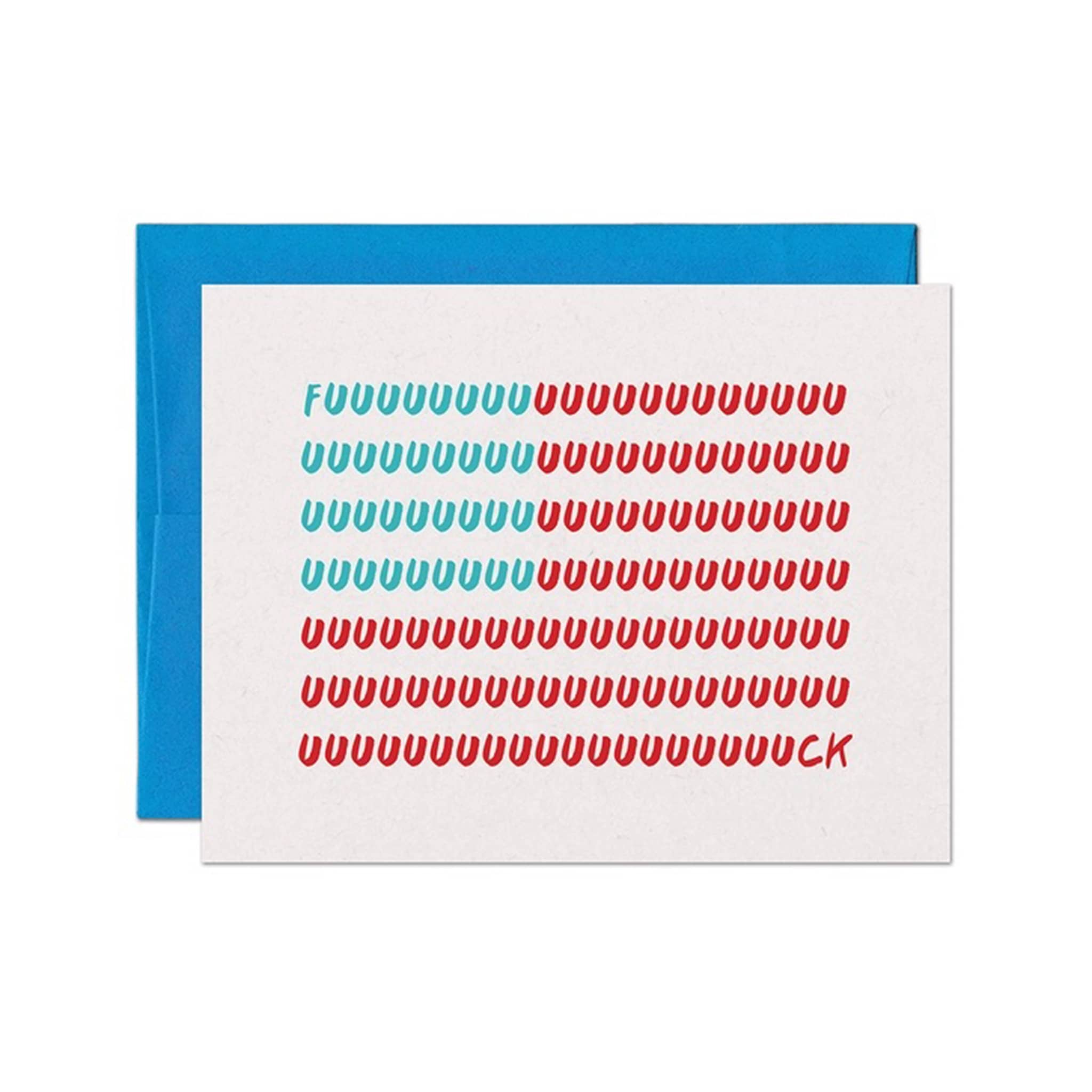 We love this country, but we have thoughts. This hilarious greeting card is the perfect way to express them. Features a flag design made with the letters of one of our favorite swear words. Printed in full color and blank inside. The card measures 4.5 x 5.5 inches and comes with a coordinating A2 envelope. Handmade in San Diego by a woman-owned small business.