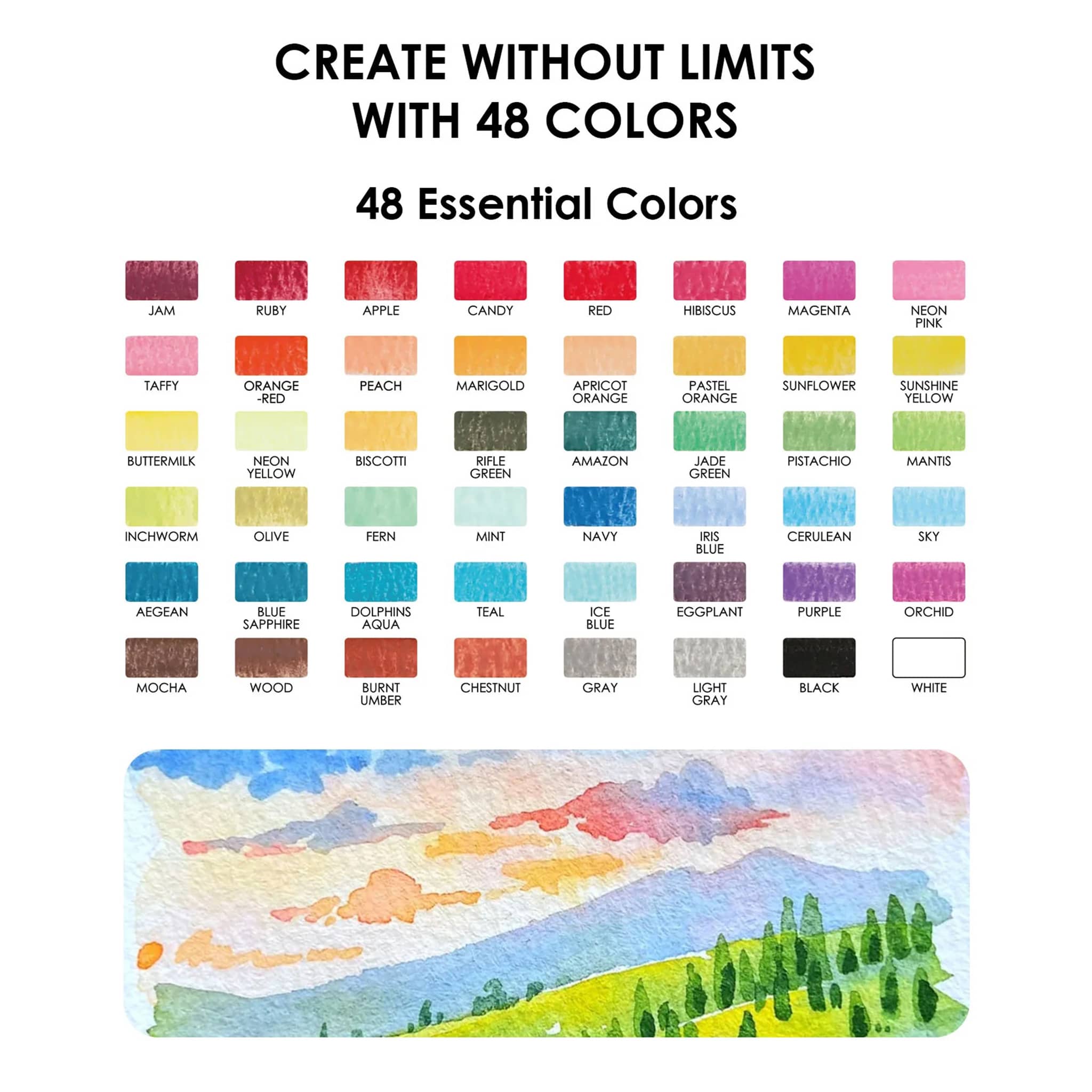 Unleash your creativity with a wide range of 48 brilliant and vibrant colors. This extensive palette gives you endless possibilities for mixing, matching, and creating, helping you learn color theory and build confidence as a new artist.