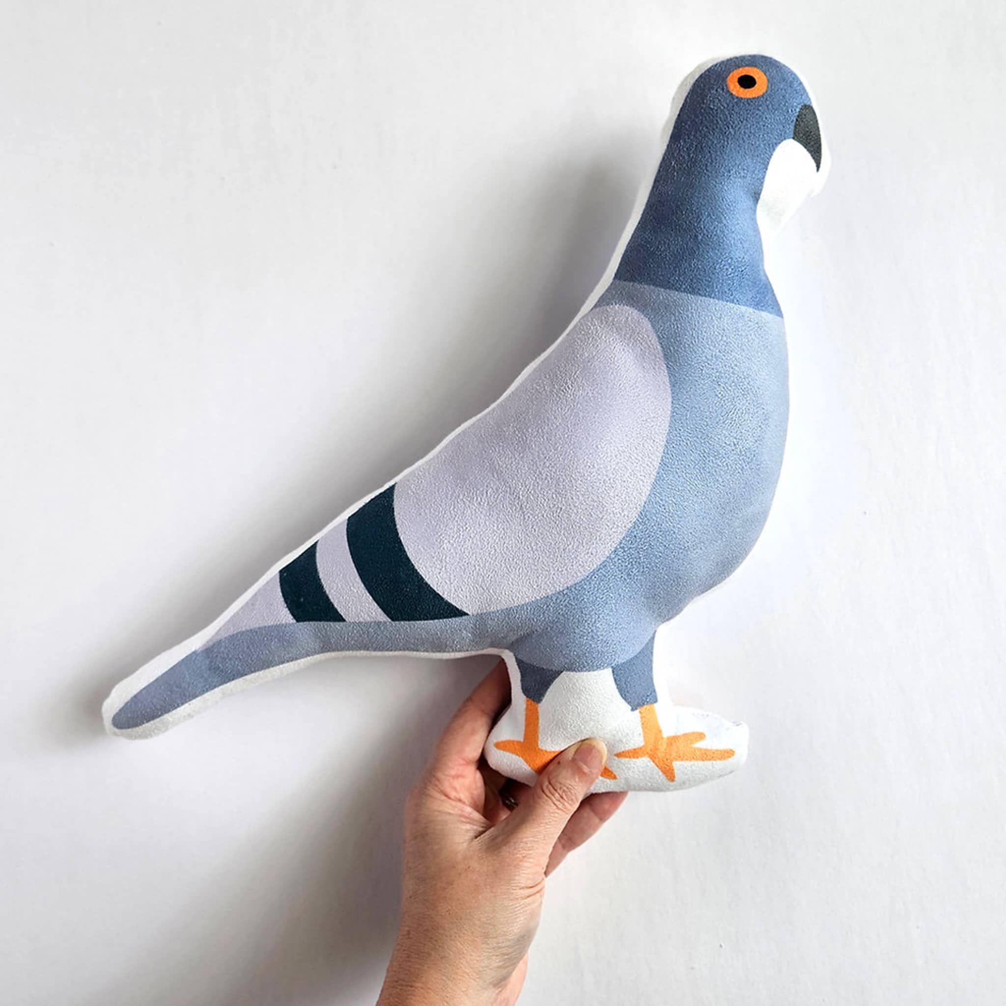 The fabric panels are made from high-quality vegan suede fabric that's soft, durable, and easy to sew. Printed using eco-friendly water-based inks for a gentle, non-toxic finish. Sew by hand or machine, great for beginners and confident crafters alike! The finished pigeon will measure approximately 13.5 inches tall. Made in the USA by a women-owned business based in Maine.