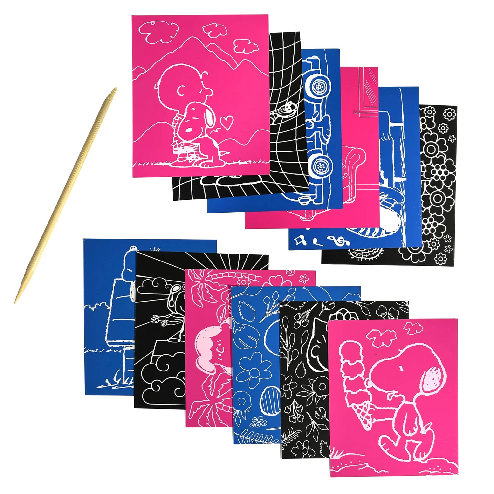 Explore Snoopy’s adventures in vibrant colors with the OOLY x Peanuts Scratch Art Kit! Scratch away the surface to uncover bright Peanuts scenes featuring Snoopy, Woodstock, and the gang. This scratch art kit for kids comes with 12 scratch cards and a wooden stylus, perfect for kids who love surprises. Whether you’re revealing Snoopy in flight or Charlie Brown at bat, this kit showcases the joy of the Peanuts world with every scratch!