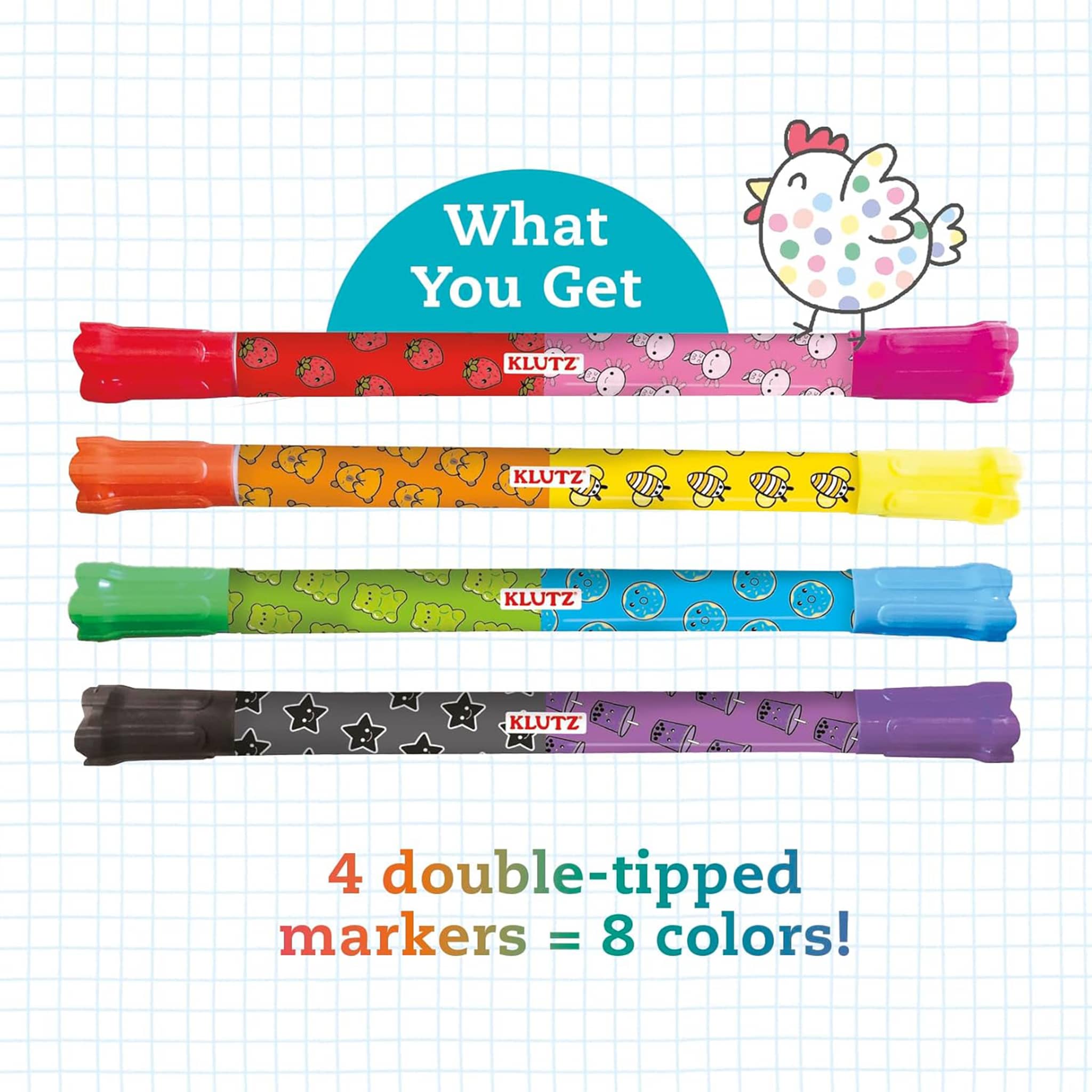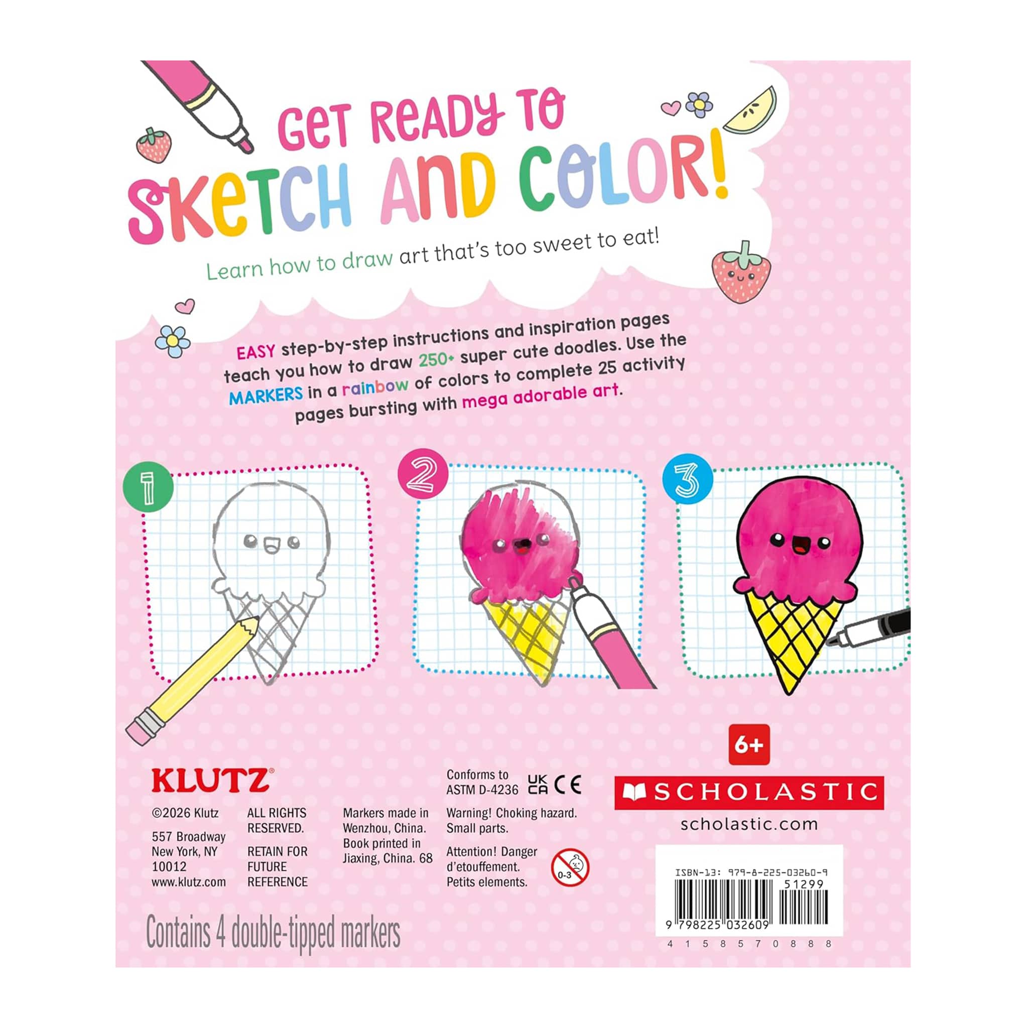 Draw delightful doodles with markers! Step-by-step instructions teach readers how to draw sweet snacks, cute critters, and much more. Practice your doodling skills right inside the book, and then color in your creations with four double-tipped markers (eight colors in all)! Measures 9.3 x 8.35 x 1.2 inches, suitable for ages 6 and up.