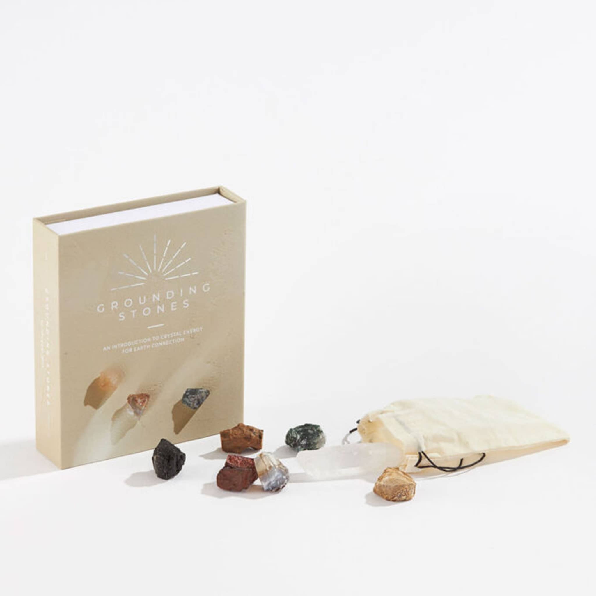 Grounding Stones offers inspiring information about crystal properties and a guide to grounding practices in uplifting, modern packaging with eye-catching silver foil details and a lay-flat design for easy use.