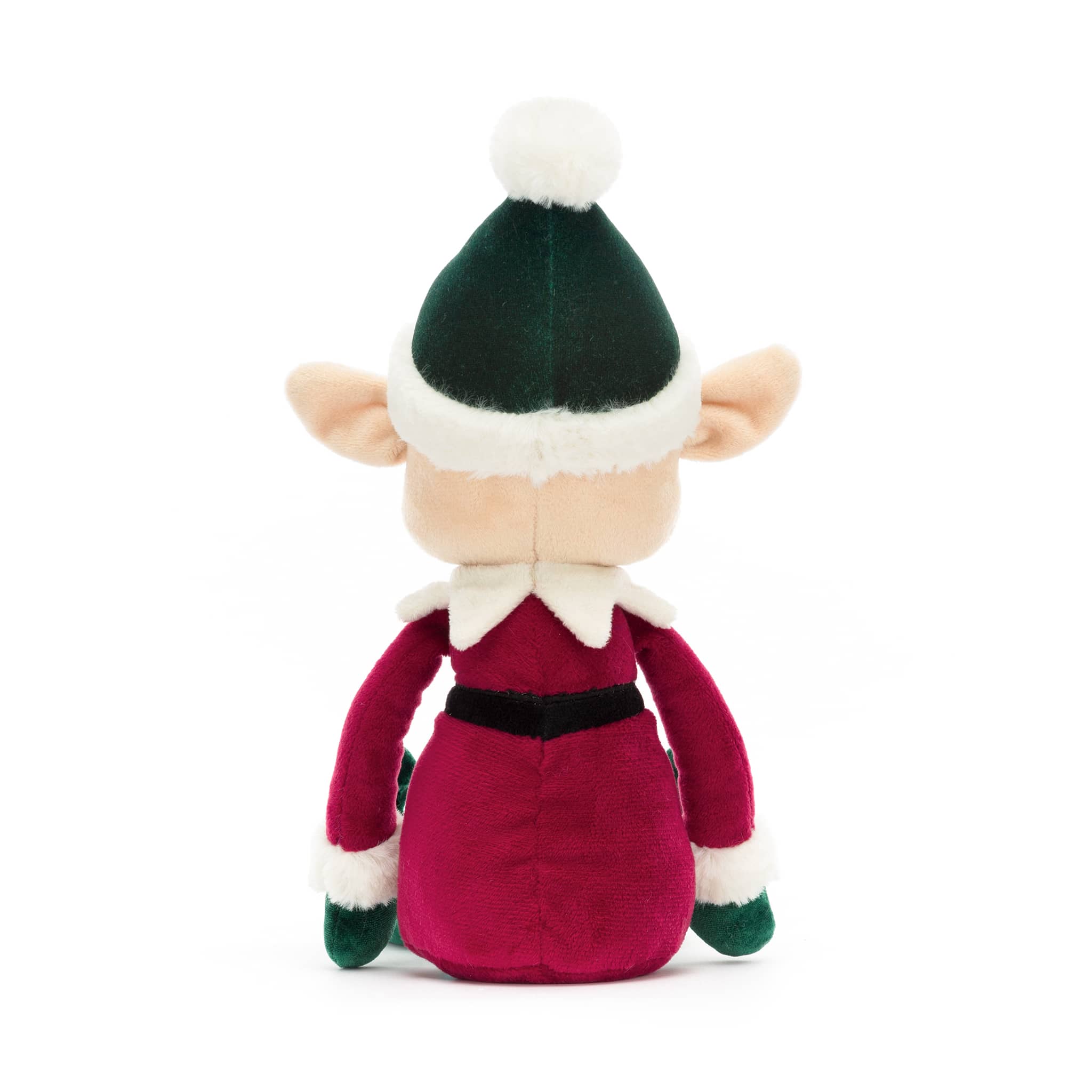 Everyone needs a helper, not just Santa! Eldo Elf is a charming friend with rosy cheeks and fold-detail ears. This dandy pixie wears a mulberry suit with a cream star collar and gold-buckled belt, paired with curly velvet boots and matching ivy green bobble hat. With an affable smile, Eldo is here to boost the Christmas cheer!