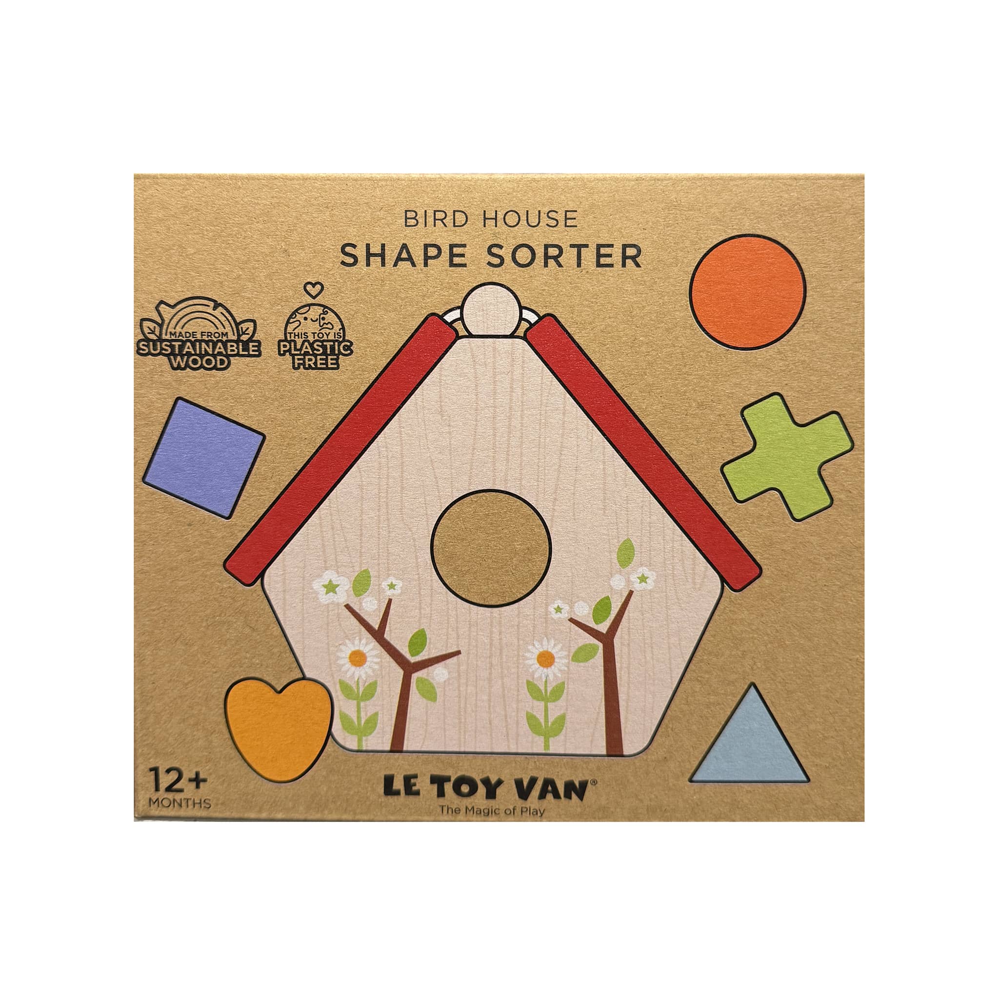 This sweet shape sorting toy, designed in a delightful wooden bird house design, is a cute twist on a classic. An award-winning toy, it is a must-have for curious toddlers and makes a great first puzzle for early learning fun. Featuring 6 wooden play shapes in vibrant colors, little ones will love matching the shapes and posting them in the coordinating holes in the bird house roof. A great tool for teaching shape recognition in a fun and interesting way as well as fine-tuning hand-eye coordination. The colorful design helps little ones to develop color recognition and encourages imaginative play. Box packaging measures 6.75 x 5.75 x 4.75 inches. Suitable for ages 12 months and up.