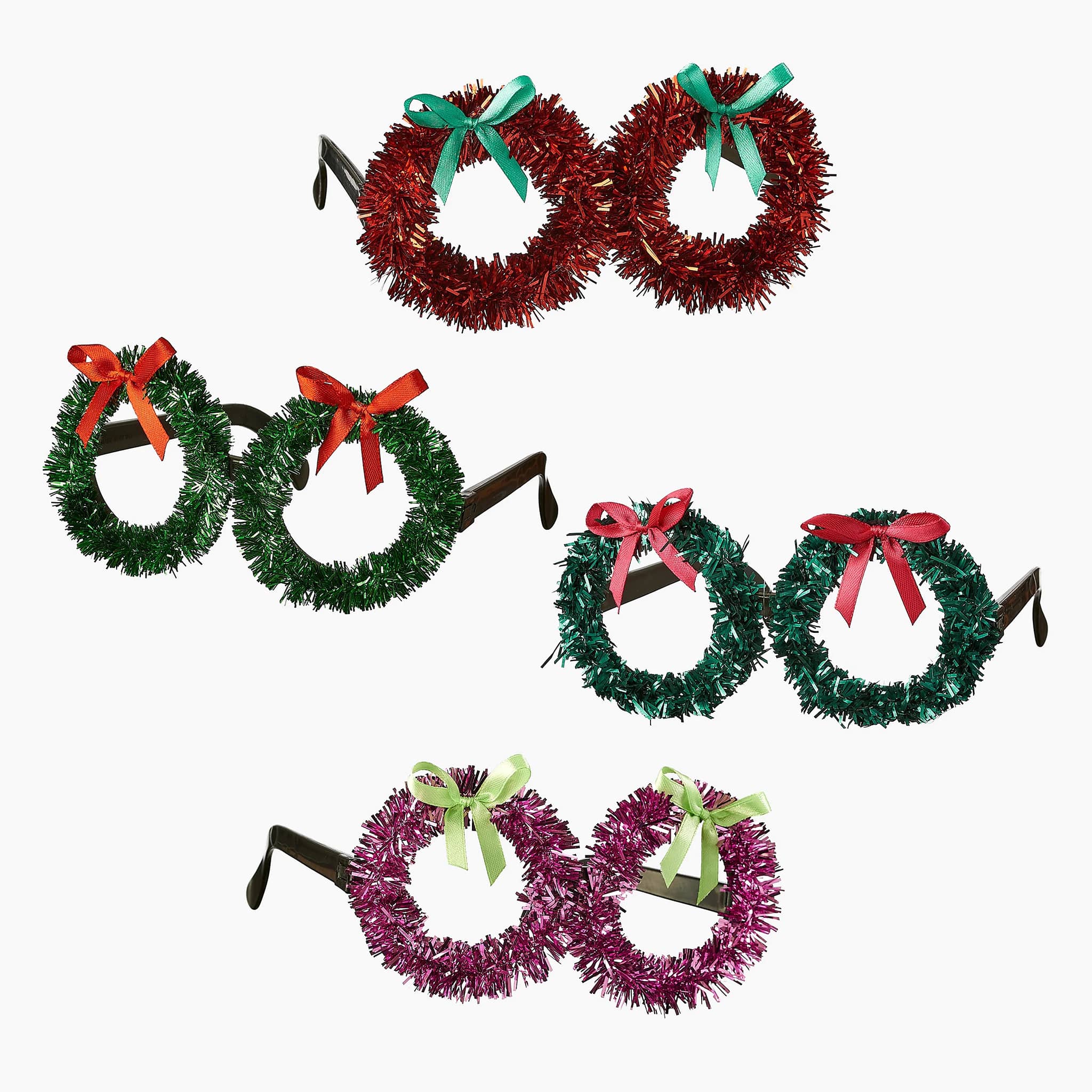 Get into the holiday spirit with these fun Christmas Wreath Glasses! Featuring black frames and festive wreaths with bows around each eye. Perfect for holiday parties, photo booths, and festive gatherings, these novelty glasses add a playful touch to any Christmas celebration. Available in red, green, teal and pink wreath colors with contrasting bows. One size fits most.