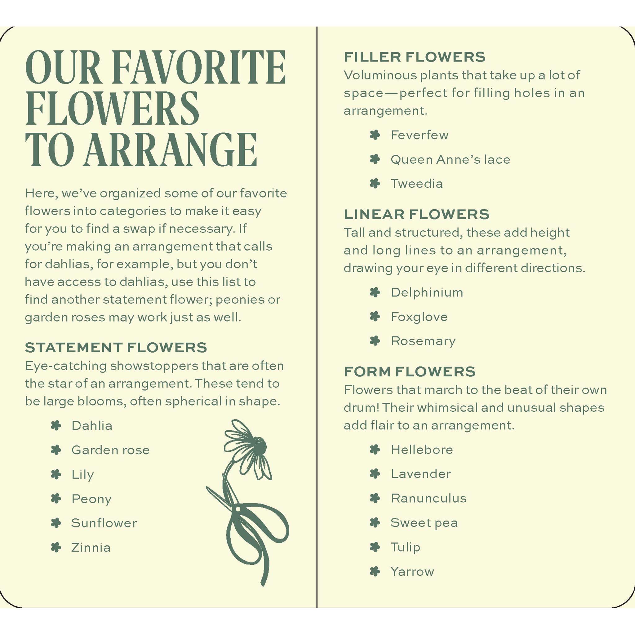 Design stunning floral arrangements for holiday hosting, special occasions, gifting to friends, or simply making any day a little brighter and more beautiful. This easy-to-use deck includes 30 how-to recipe cards for creating gorgeous seasonal arrangements, including a lush harvest tablescape, a welcoming holiday wreath, a summer-sweet centerpiece for al fresco dining, a 'grateful guest' bundle to present to your host, and bouquets for Valentine's Day, Mother's Day, and more.