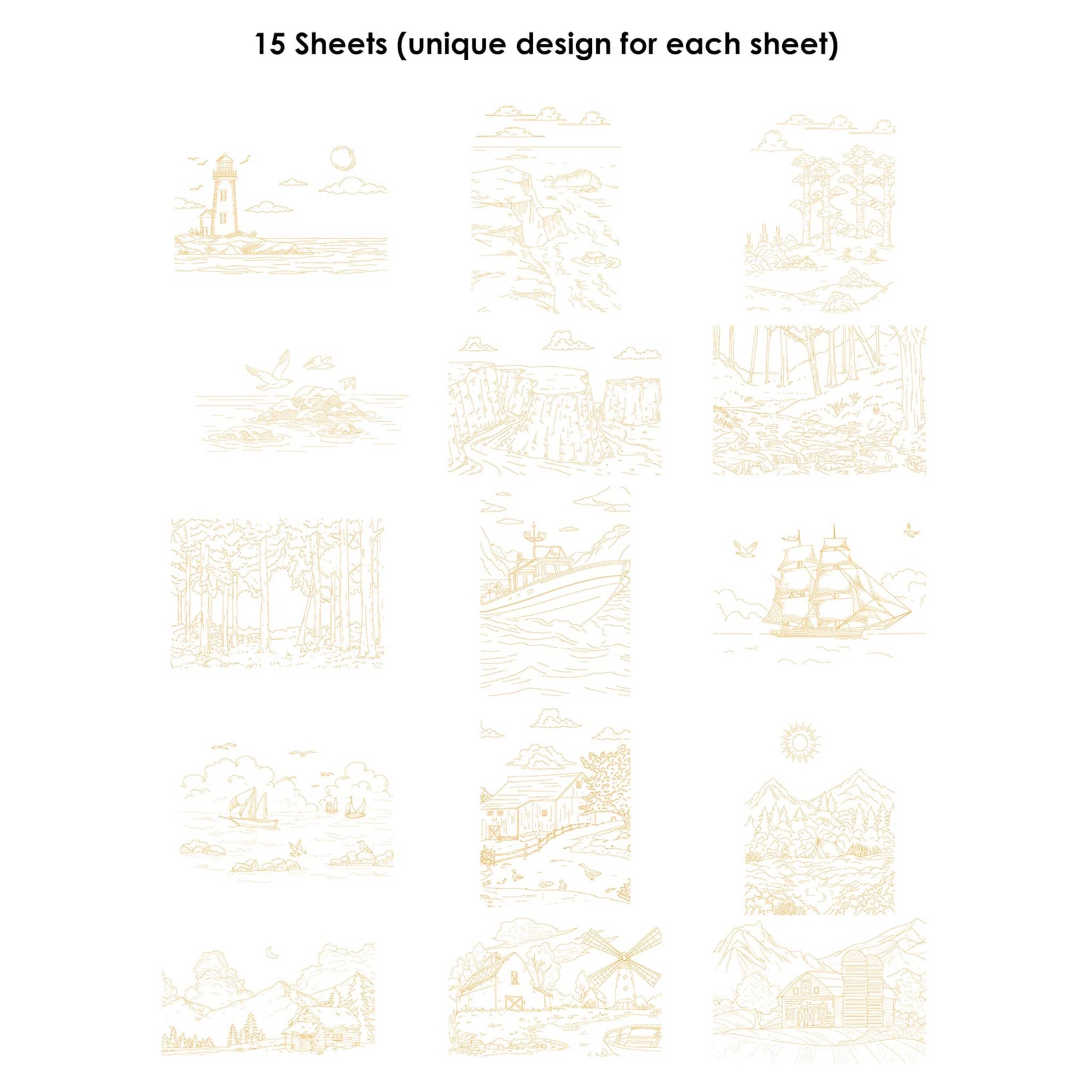 This Grabie landscape-themed watercolor coloring book blends creativity, premium quality, and relaxation. Featuring 15 mesmerizing landscapes on acid-free, high-quality paper, it offers limitless artistic opportunities for all ages and skill levels.