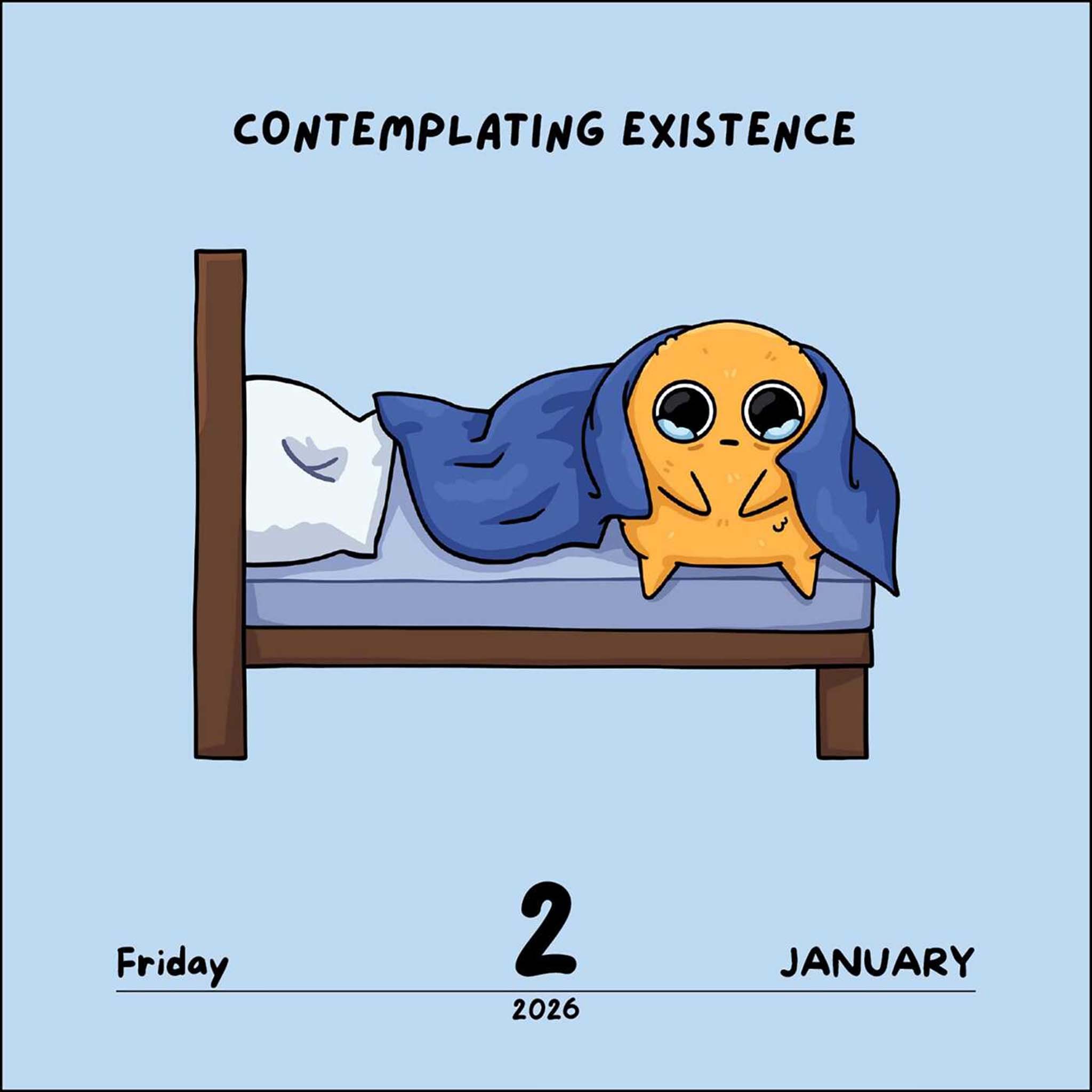 Feel like you are becoming a “depresso espresso”? The internet’s favorite stressed and depressed chicken nugget is here to help! Let the lovable, adorable, and relatable Sad Nuggie cheer you every day in this Sad Nuggie™ 2026 Day-to-Day Calendar.