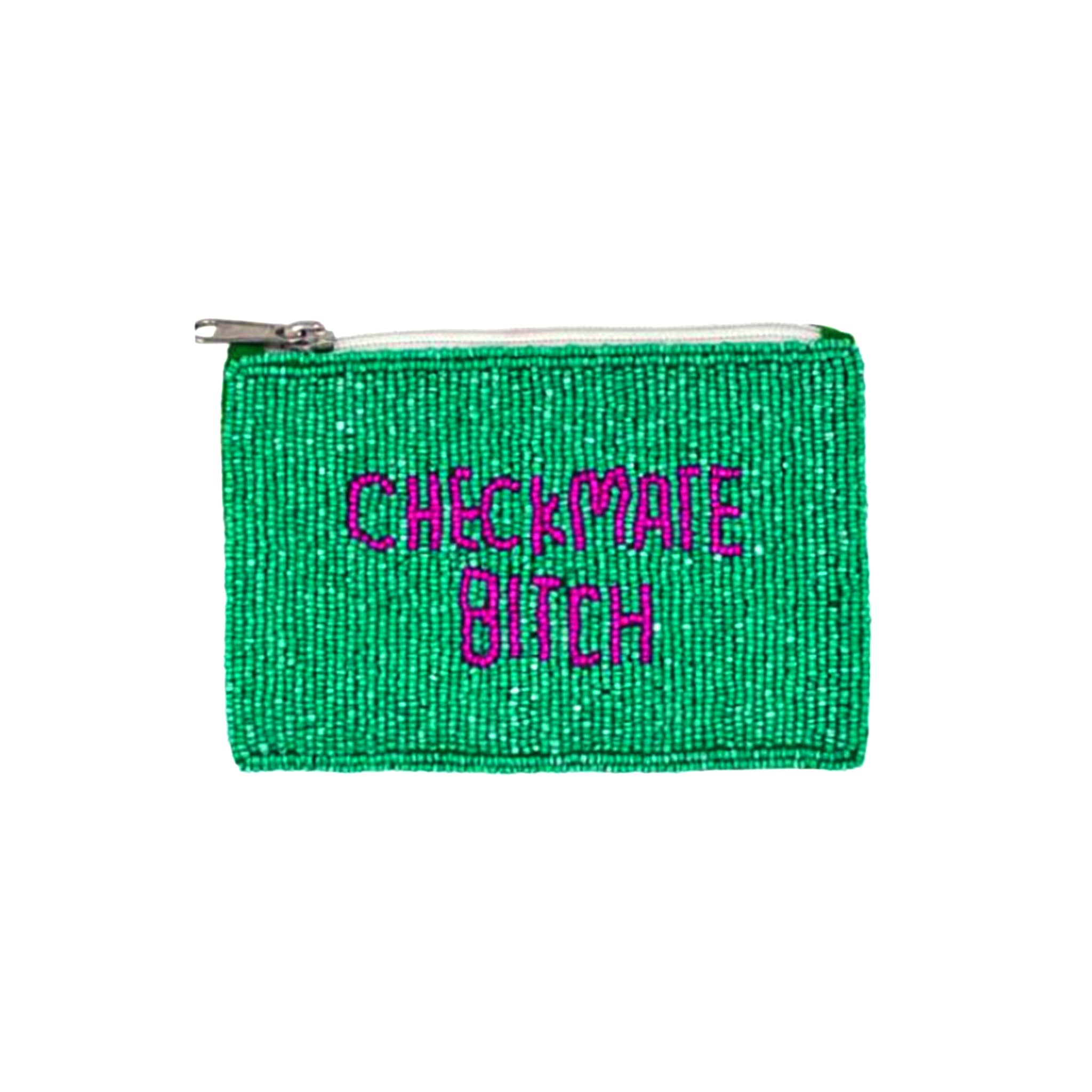 This pouch has "Checkmate Bitch" in bright pink lettering on a green backdrop. Coin pouch measures 6 x 4 inches.