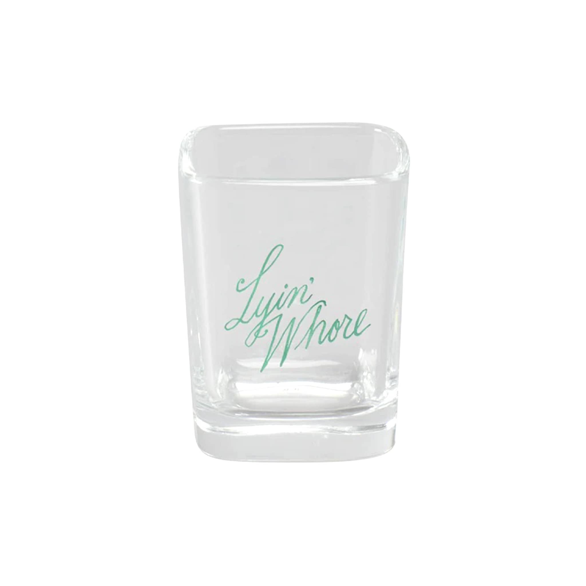 Subtlety is overrated. Say it with a shot glass. This hilarious clear shot glass says "Lyin' Whore" in green script lettering on the front. Made from soda lime glass, dishwasher safe and holds 2.25 ounces of liquid. This shot glass is part of the Pleasantries line from Fish's Eddy, products with absolutely no filter! Made in the USA.