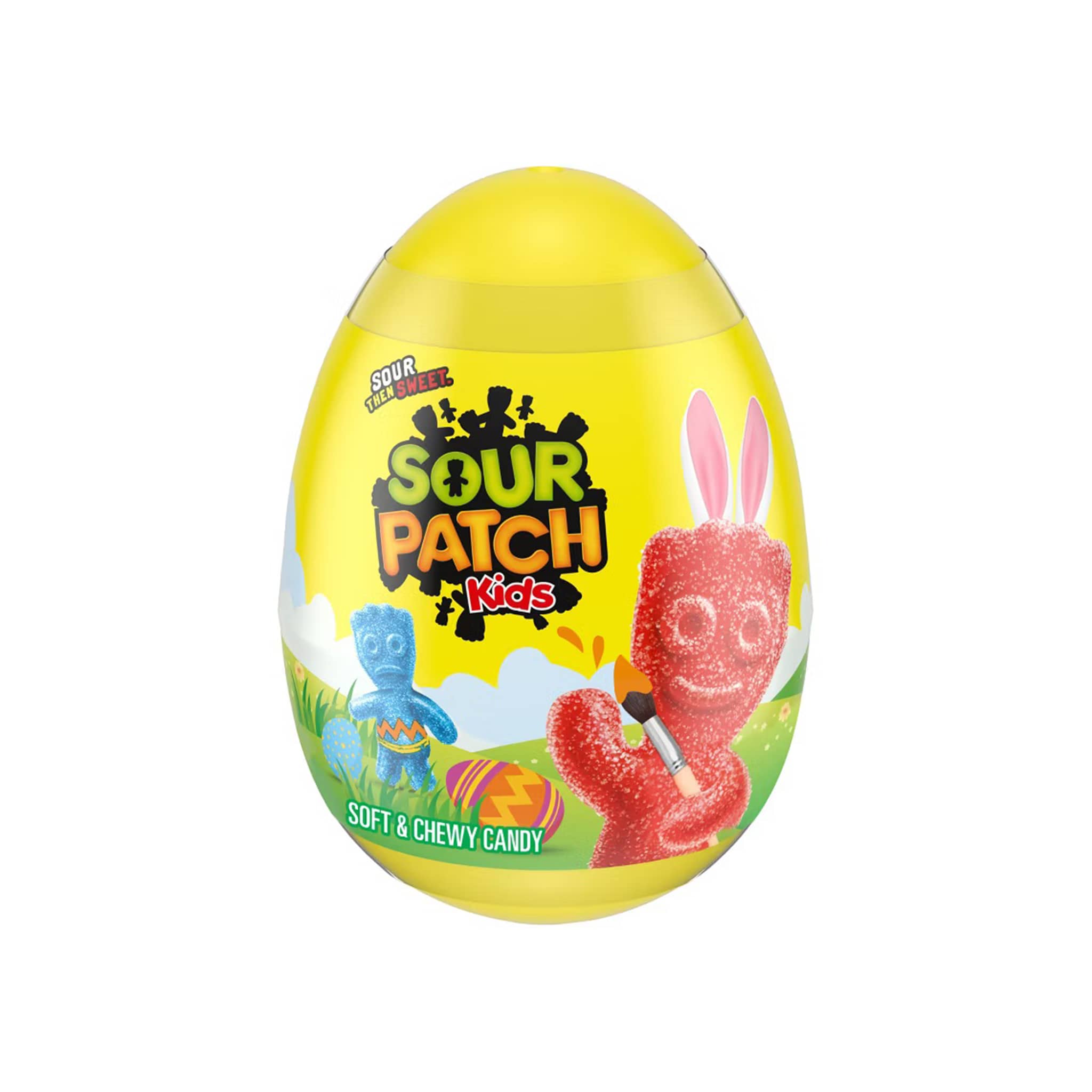 Sour is a sweet idea for Easter baskets and egg hunts when they're Sour Patch Kids Eggs! Each egg-shaped container features fun illustrations on the outside and is filled with 2 treasure packs of the beloved fruit-flavored sour then sweet gummies. Includes a total of 0.88 ounces of candy.
