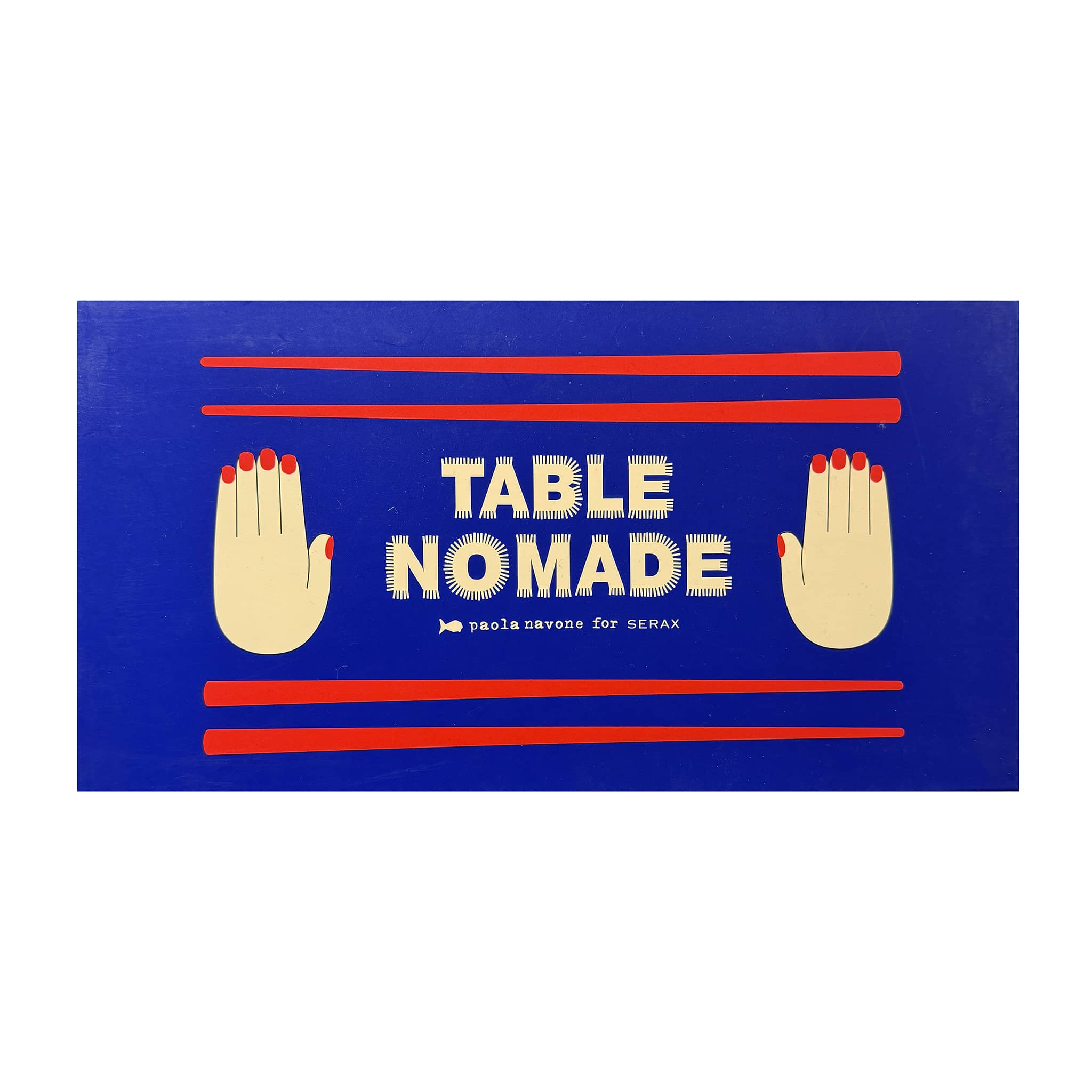 The Table Nomade Chopstick and Holder Set by Serax consists of two pairs of chopsticks and charming chopstick holders in the form of hands with red painted nails. Designed by Paola Navone, the red melamine chopsticks and white porcelain holders are packed in an indigo blue gift box. The set adds a pop of red (a symbol of luck) to any table setting and is a surefire topic of discussion at the dinner table.