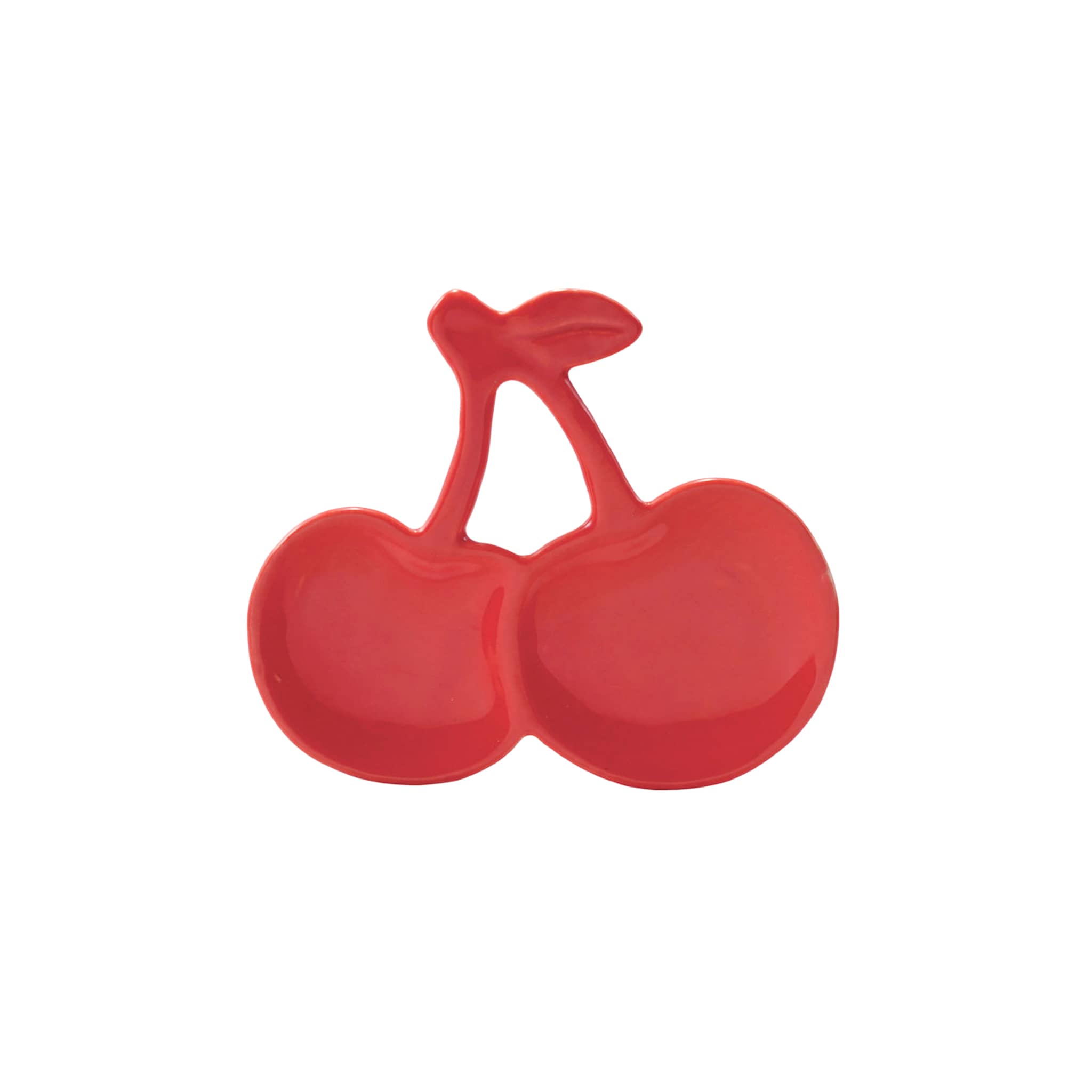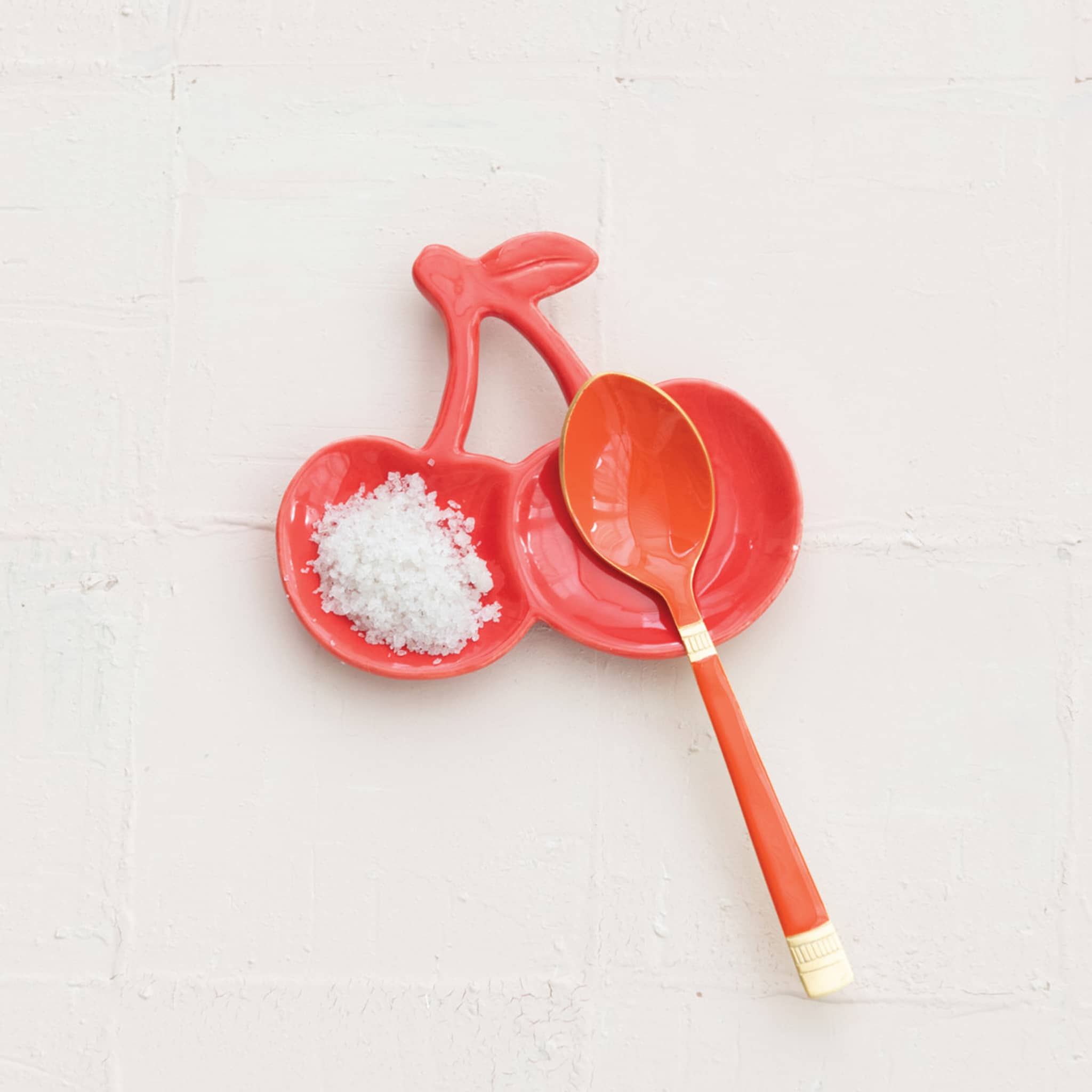 Add a playful pop of color to your kitchen or table with this red ceramic Cherries Dish. Crafted from glossy ceramic, its charming cherry silhouette makes it as decorative as it is functional. Perfectly sized to use as a spoon rest, a salt dish for the table, or a tidbit or trinket dish, it’s a versatile accent for everyday use and entertaining alike. Whether styled on a countertop or set out for guests, this cherry-shaped dish brings a sweet, whimsical touch to any space. Measures 4 x 4.75 inches.