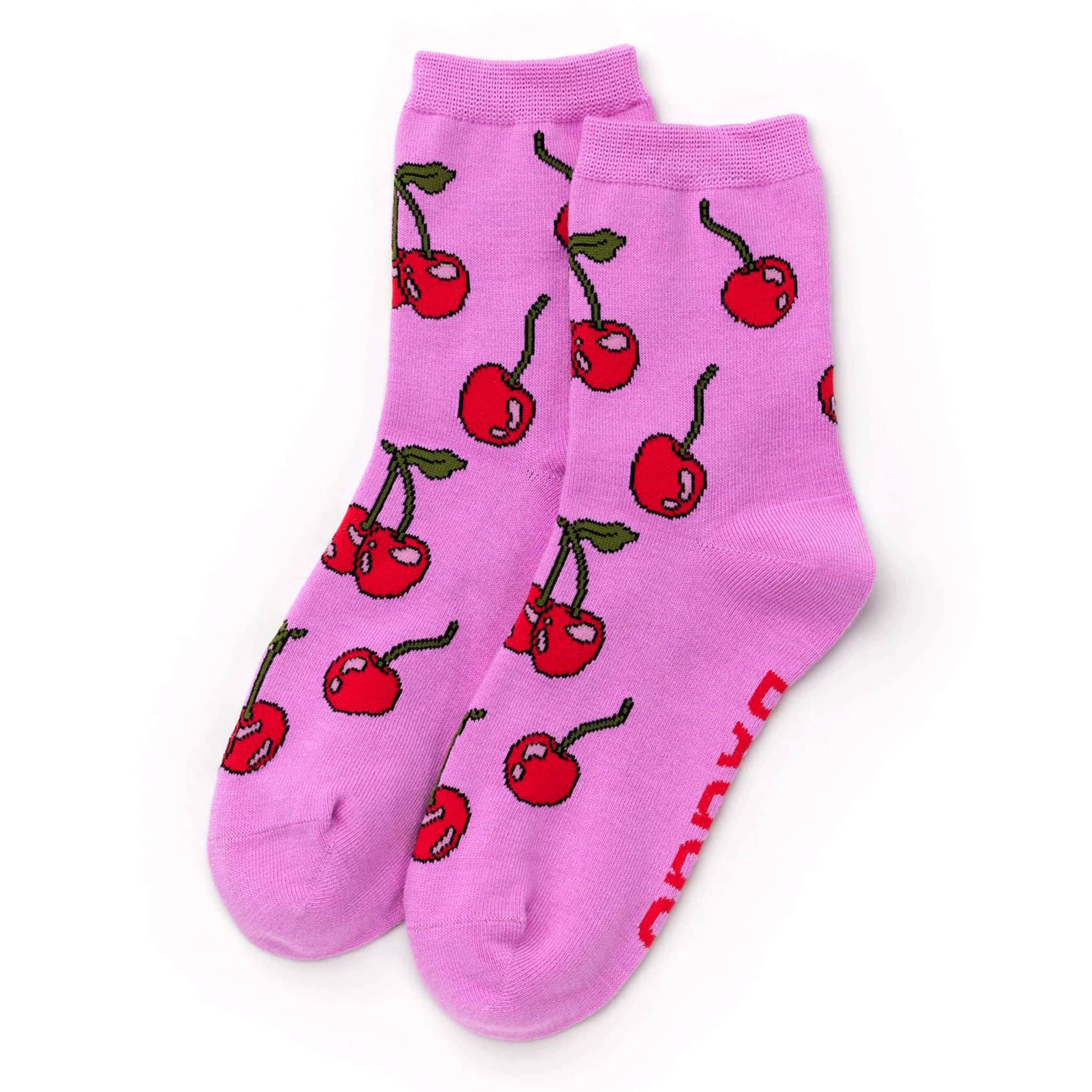 Sure, they're a bag company, but isn’t a sock just a knitted bag for your foot? These adorable crew socks from BAGGU are a real treat for your feet! Features the Cherries print on a bright pink backdrop. Woven from soft and stretchy bamboo rayon with poly/nylon elastic. Fits US women’s 6–11 or US men’s 4.5–9.5. Machine washable, includes 1 pair of socks.
