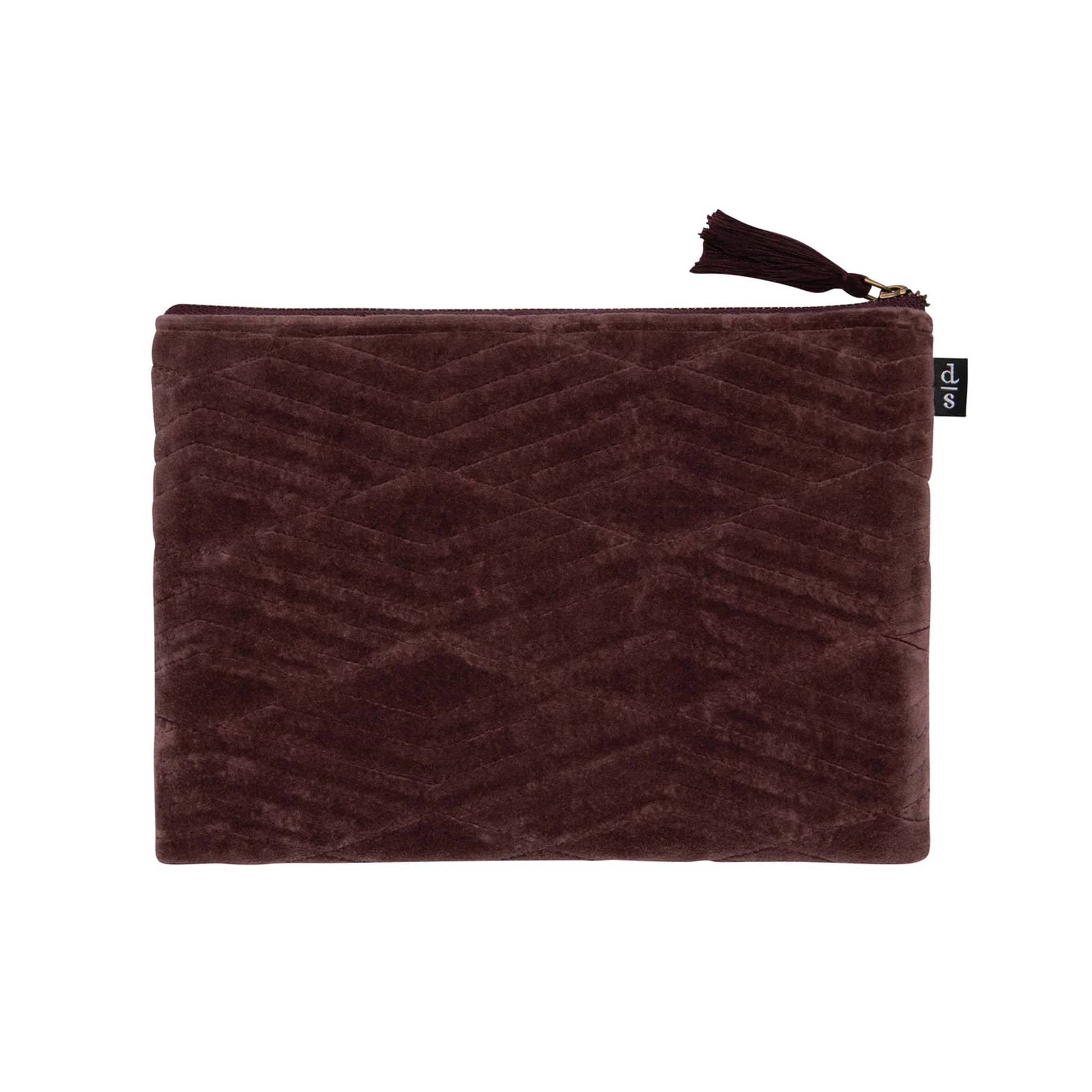 Meet your new favorite little sidekick! This Fig Quilted Velvet Flat Zip Pouch is equal parts glam and practical. With its rich, touch-me velvet texture and distinctive stitched design, it’s cute enough to carry as a clutch and clever enough to keep your cosmetics, cords, or everyday essentials neatly tucked away. The flat silhouette slips easily into a tote or handbag, while the zip-top closure keeps everything secure. Whether you’re organizing on the go or stepping out light and stylish, this versatile pouch brings a warm color and playful polish wherever it goes. Made with 100% cotton velvet with a 100% cotton interior lining. Spot clean only. Pouch measures 7 x 9.75 inches.