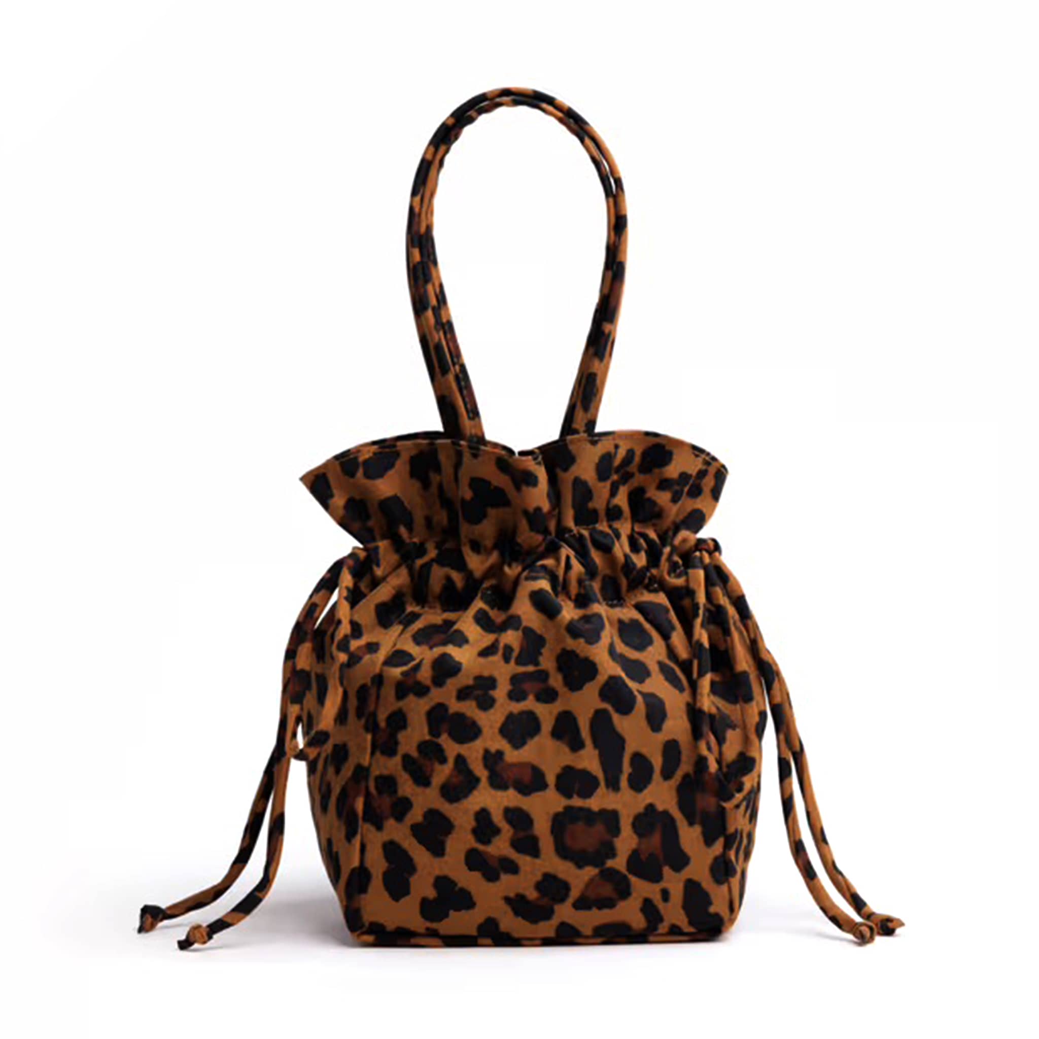 The Leopard Nylon Drawstring Bag is made for special occasions of all kinds. The Drawstring Bag from BAGGU fits exactly what you need without looking overstuffed, thanks to a cinch-top design. Carry by its top handles or style as a crossbody with a removable strap. Features an interior zip pocket to keep smaller things close at hand.