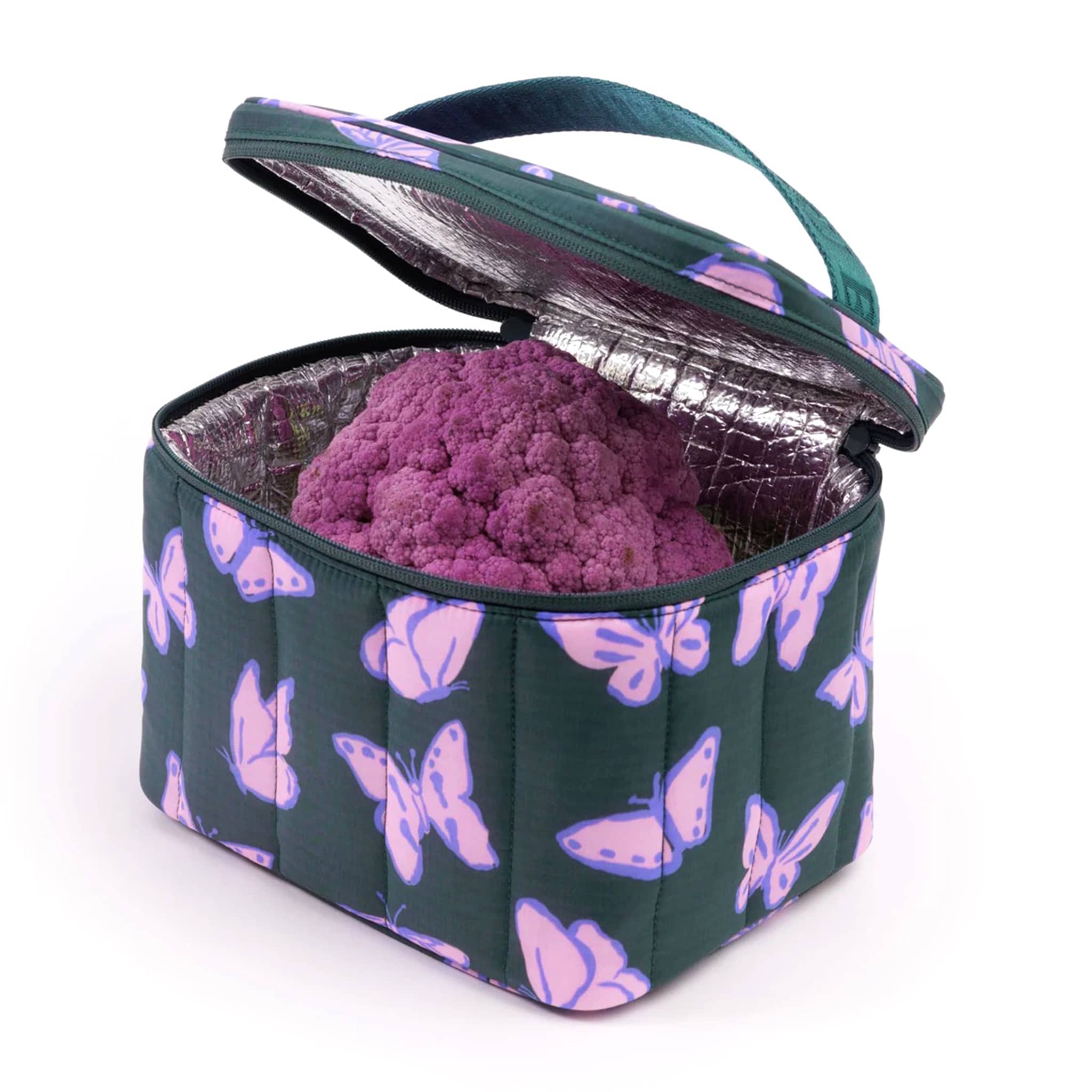Heading out with drinks and snacks? Pack those frosty goods in the stylish Butterflies Lunch Bag! It's insulated to keep all your treats cool, cushioned, and protected. Everything will be chill! Large enough to hold a six-pack of 12-ounce cans, great for both kids to take to school and adults to take to work, or for summer outings at the beach or park.