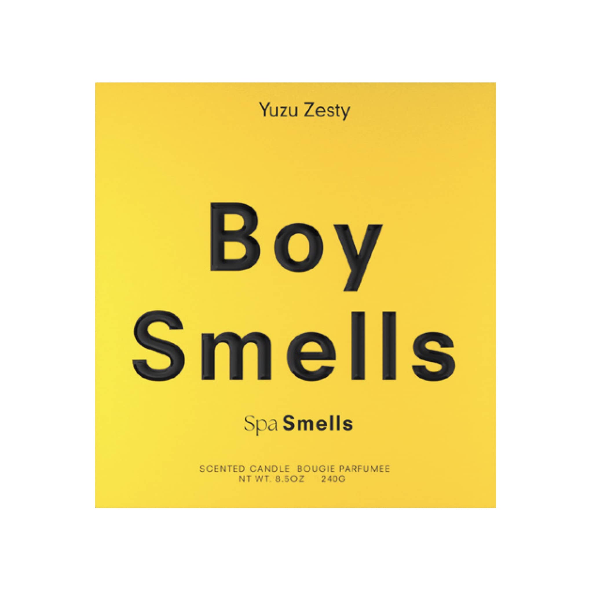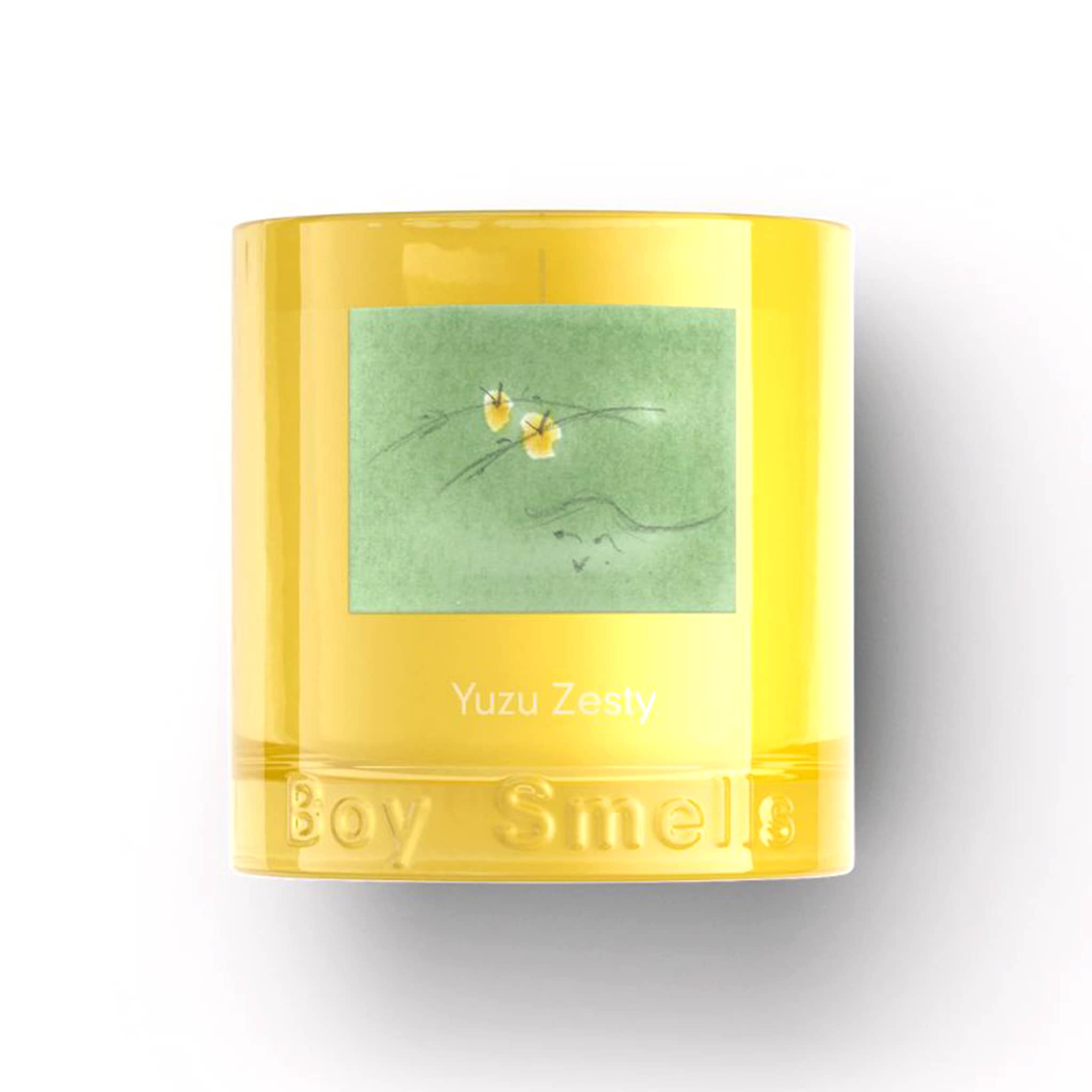 All Boy Smells candles are made with a newly formulated wax blend for even burns and bigger smells. Now vegan and non-GMO, made with US-farmed soy wax with a braided cotton wick. The Yuzu Zesty candle wax is poured into a glossy yellow glass tumbler with an illustrated label. Packaged in a matte embossed matching yellow carton, perfect for gifting. 8.5 ounce candle is 3.4 inches tall, estimated burn time is 50 hours.