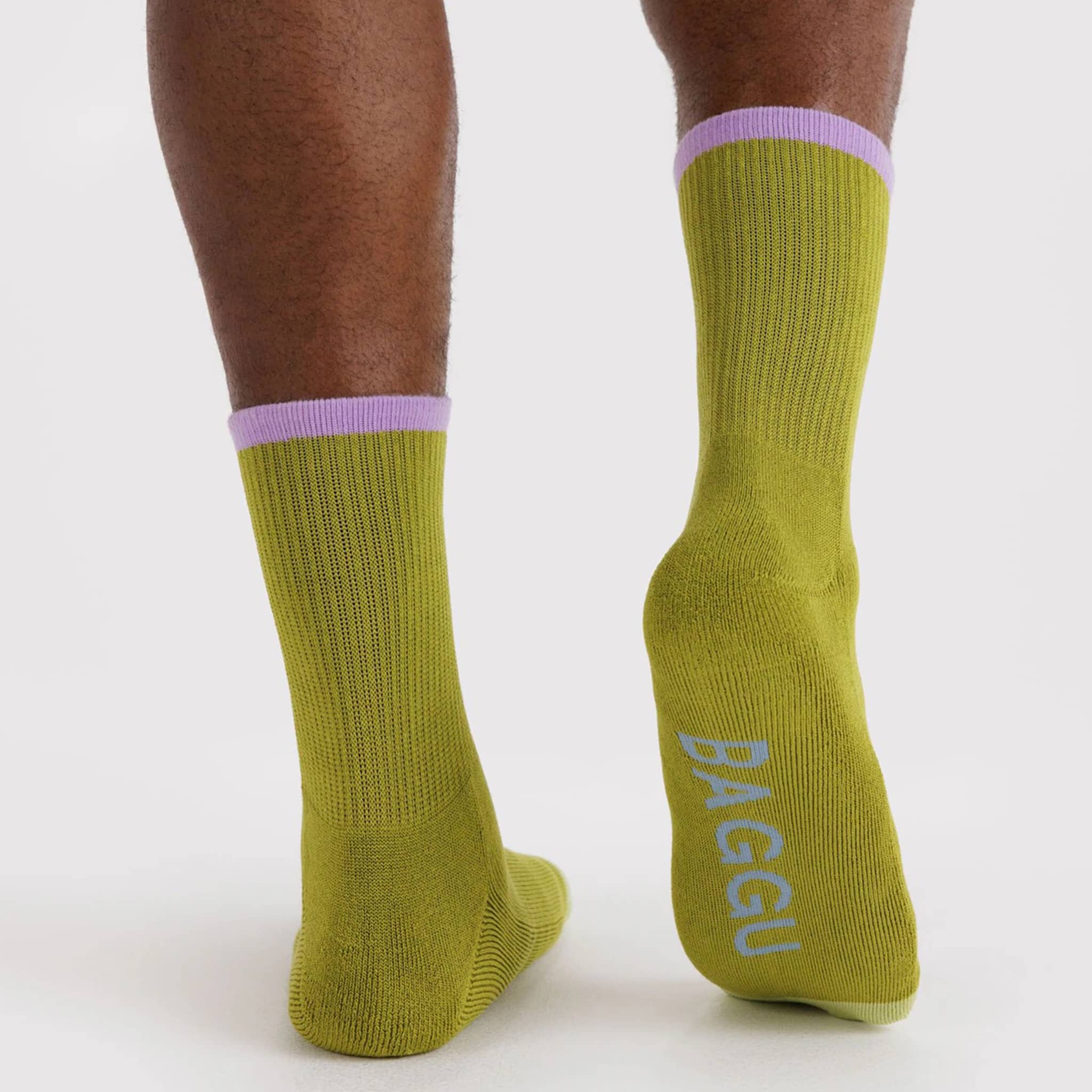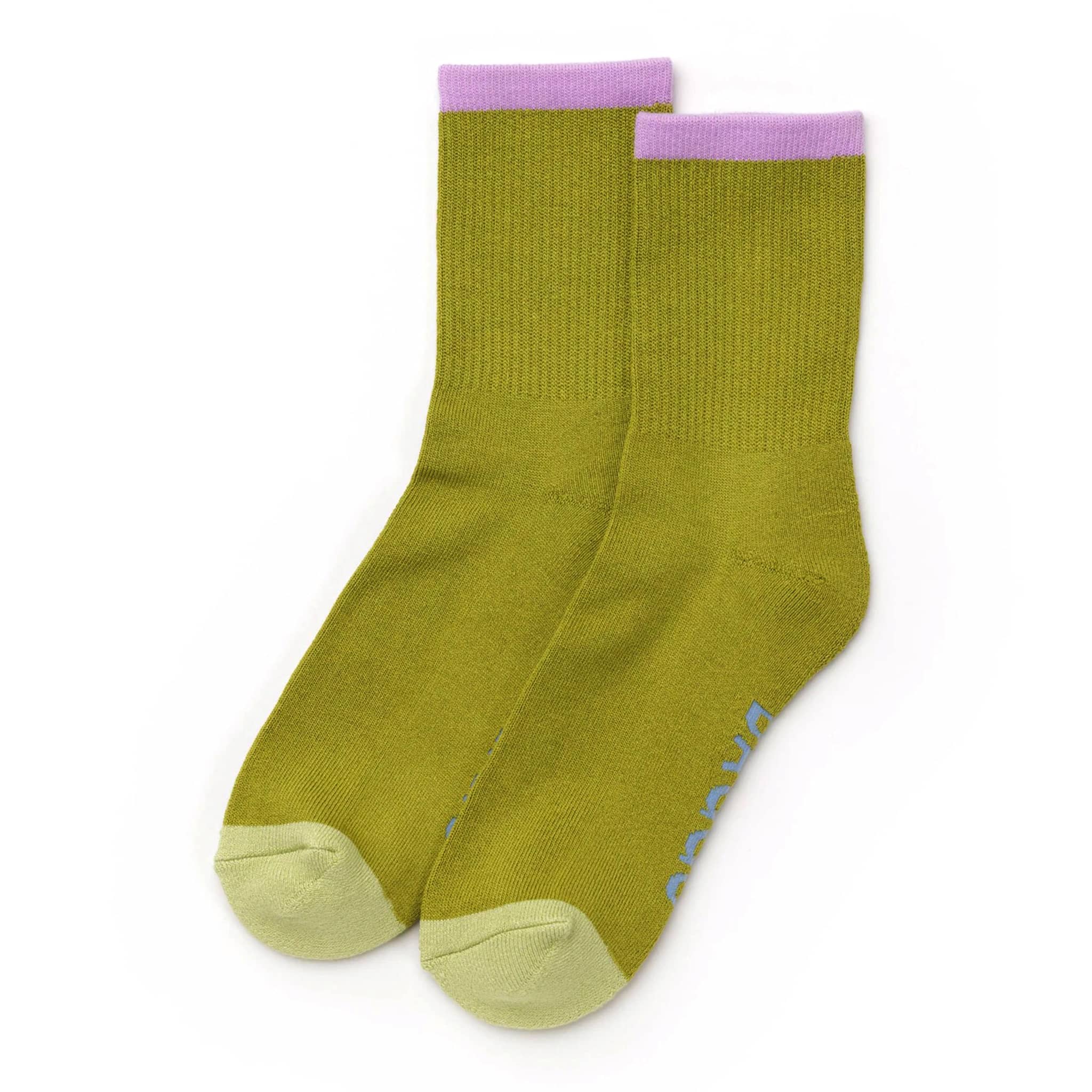 These Ribbed Socks in Olive Mix from BAGGU are a treat for your feet! These olive green socks with lilac trim are perfect for wearing all day, every day, anywhere and everywhere. They're soft, stretchy, thick, and colorful, with a looped footbed for extra comfort. Woven from soft and stretchy bamboo rayon with poly/nylon elastic. One size, fits US women’s 6–11 or US men’s 4.5–9.5. Machine washable, includes 1 pair of socks.