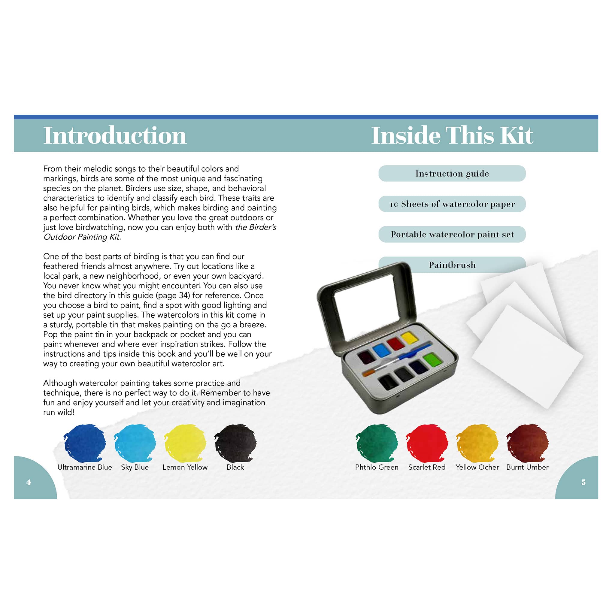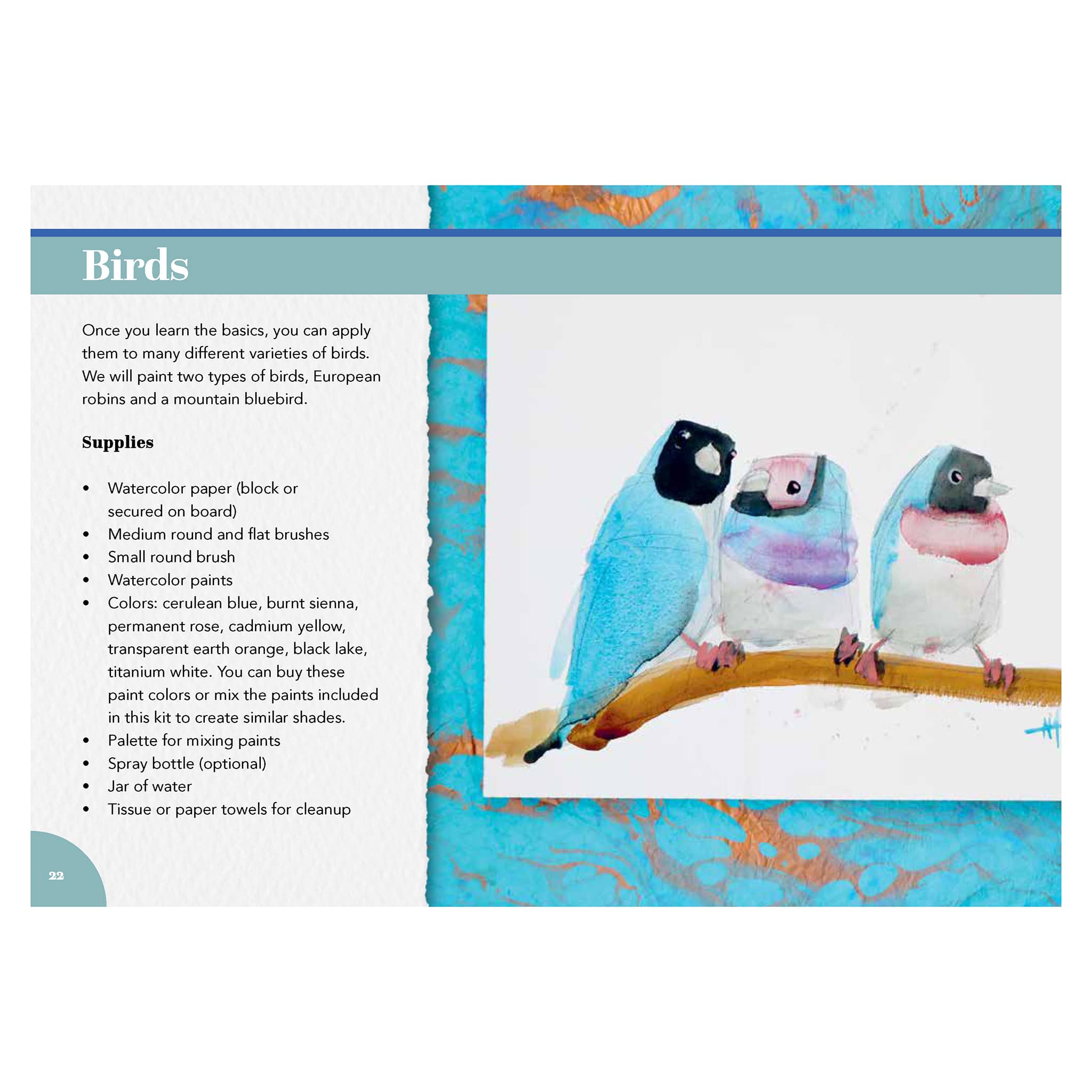 Whether you consider yourself an avid birder and painter or want to learn more about watercolor and bird-watching, this kit is for you. Inside the instruction guide, you’ll find easy-to-follow instructions for painting two birds, watercolor painting tips, and pictures to help you identify a variety of birds. Learn about watercolor paper, brush techniques, and more.