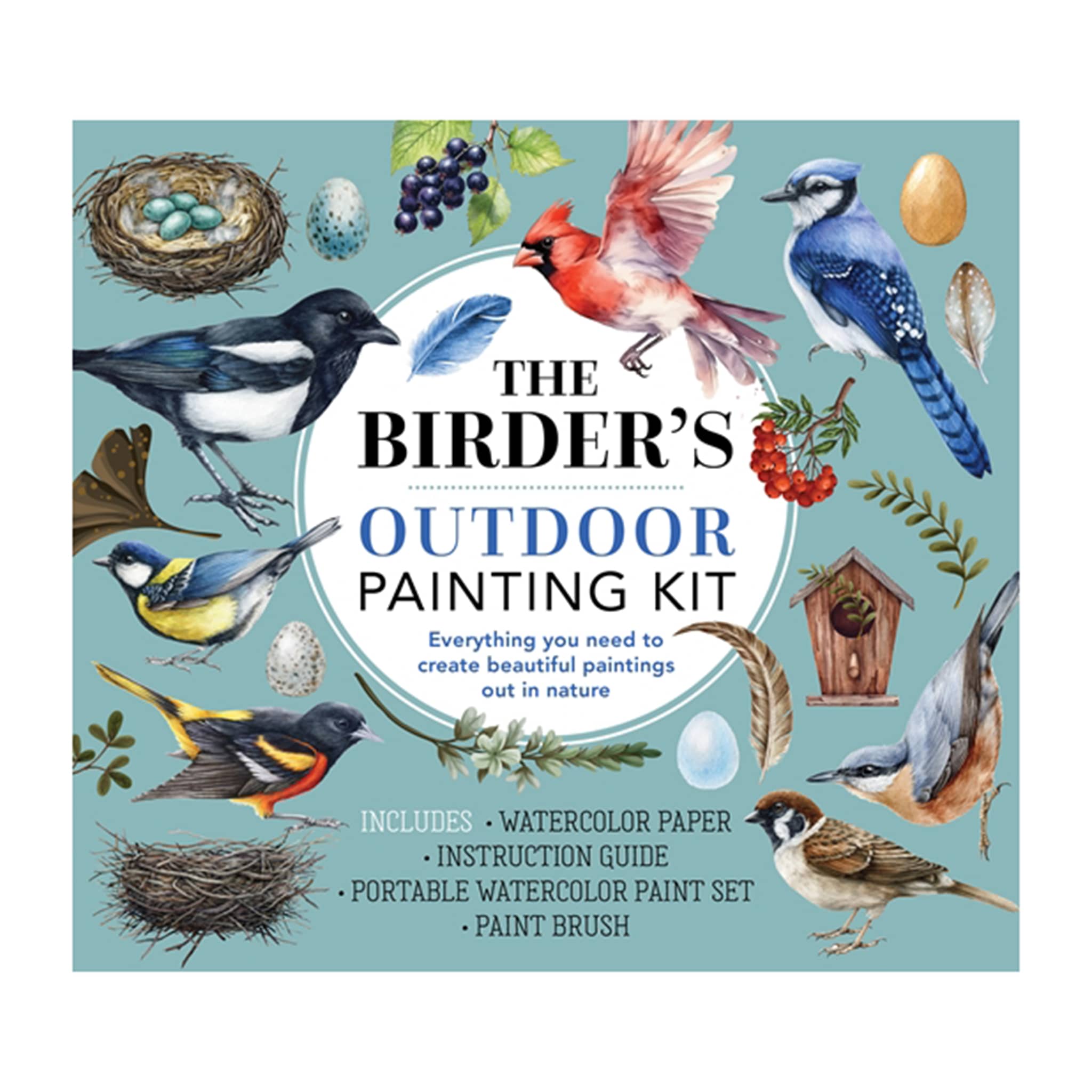 Combine your love for nature and art with The Birder’s Outdoor Painting Kit, complete with paint, a brush, paper, and a beautifully illustrated guidebook.