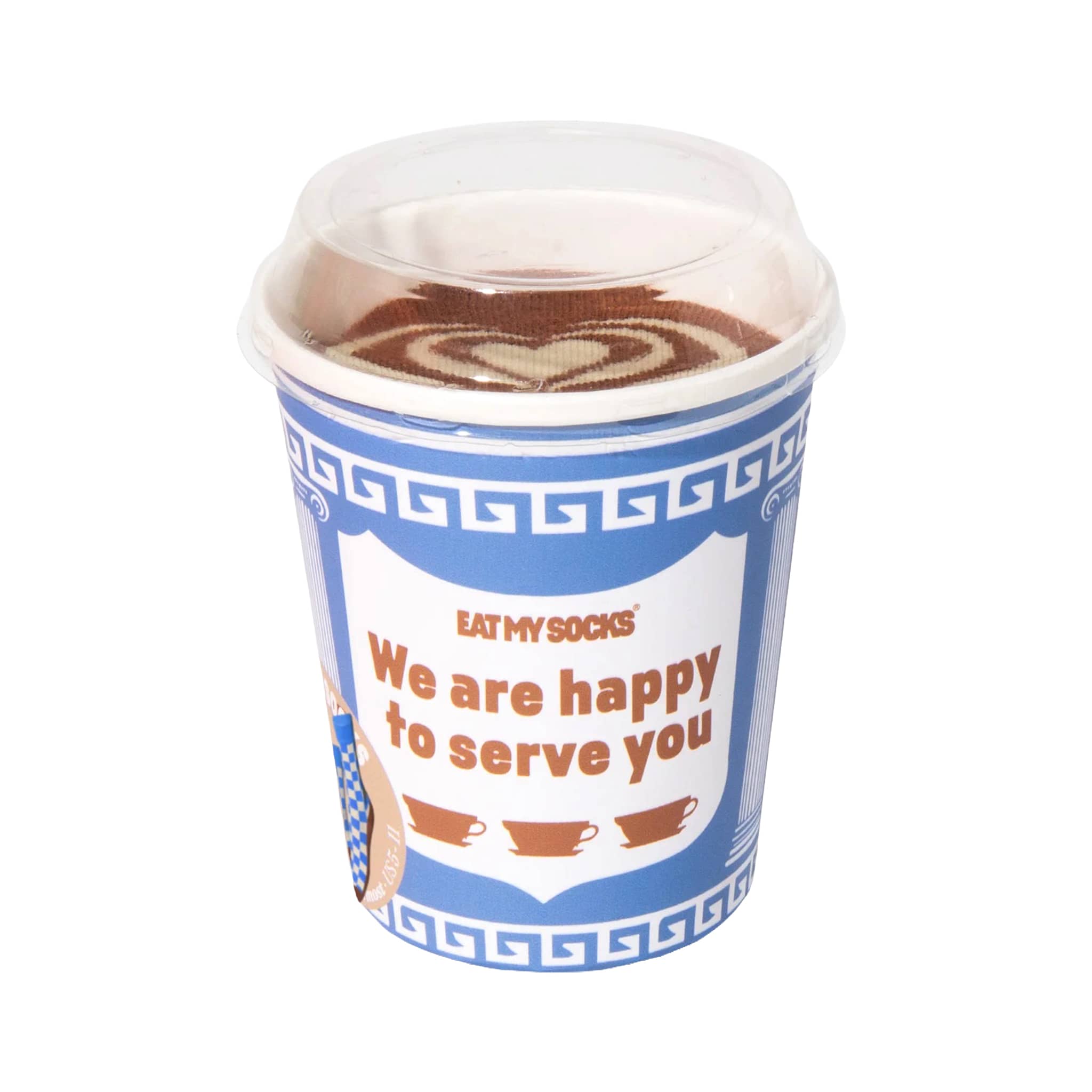 Inspired by the iconic NYC coffee cup, these "We Are Happy To Serve You" socks come packaged in a to-go cup with lid. Perfect for coffee lovers and design fans alike!
