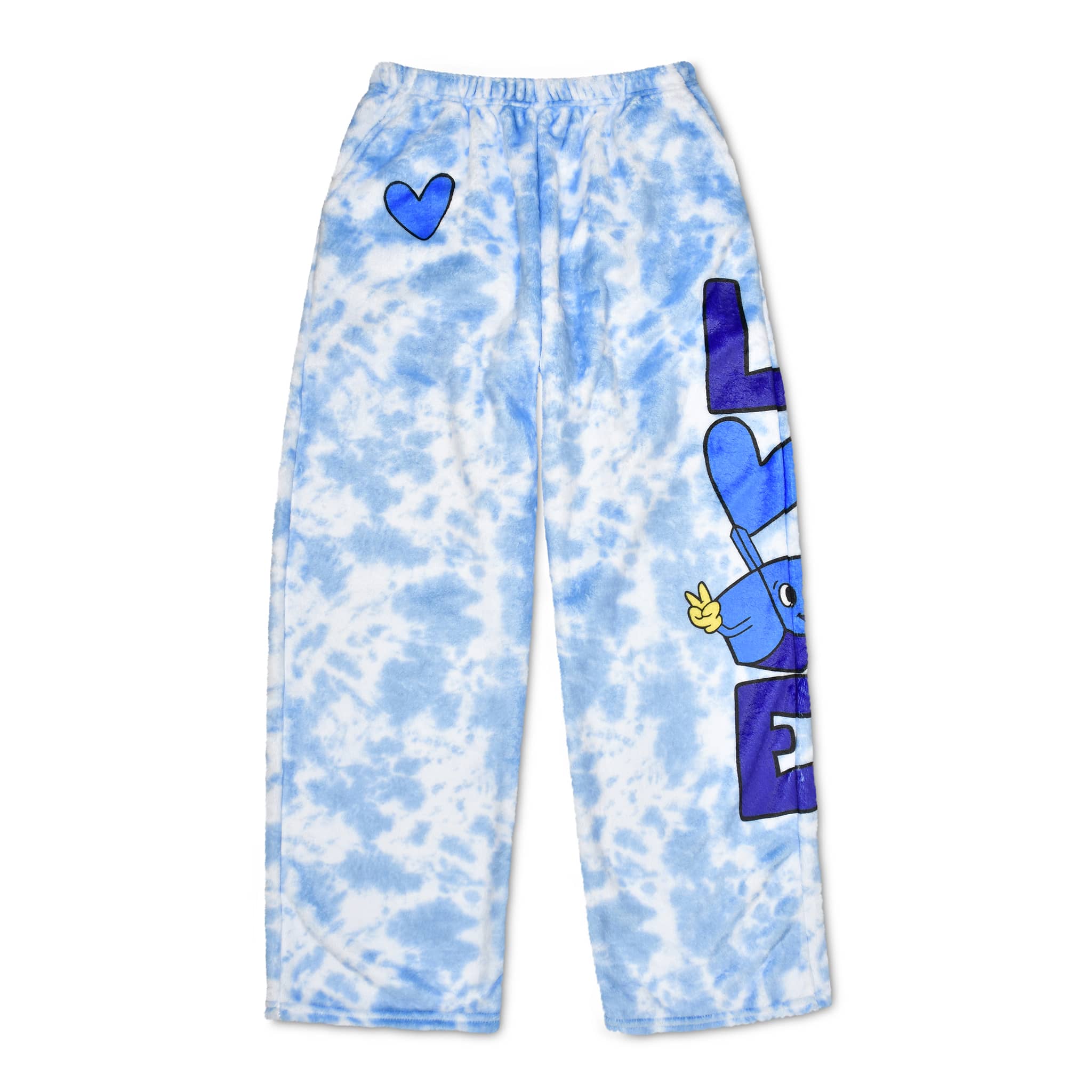 Cozy up in festive style with these plush kids’ pants, made from 100% soft polyester for ultimate comfort. Featuring a blue and white tie-dye design, they spell out “LOVE” down the left leg with a playful twist — a dreidel giving the peace sign takes the place of the “V”! Designed with front pockets, a fabric-covered elastic waistband, and easy machine-wash care, these holiday pants are perfect for lounging, playing, or celebrating in comfort and style. Children's large equivalent to size 14.
