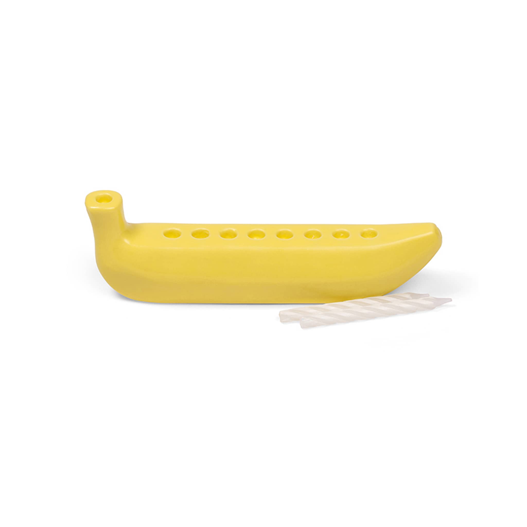 A tiny twist on the beloved banana menorah. The banana and the joke never get old. It’s basically a Hanukkah miracle. This yellow banana-shaped ceramic cutie packs the same fruity flair in a smaller size. Comes with a starter kit of 9 candles for the first three nights of Chanukah. Fits regular birthday candles. Measures 5.25 x 1.75 x 1 inches, clean with soap and water.