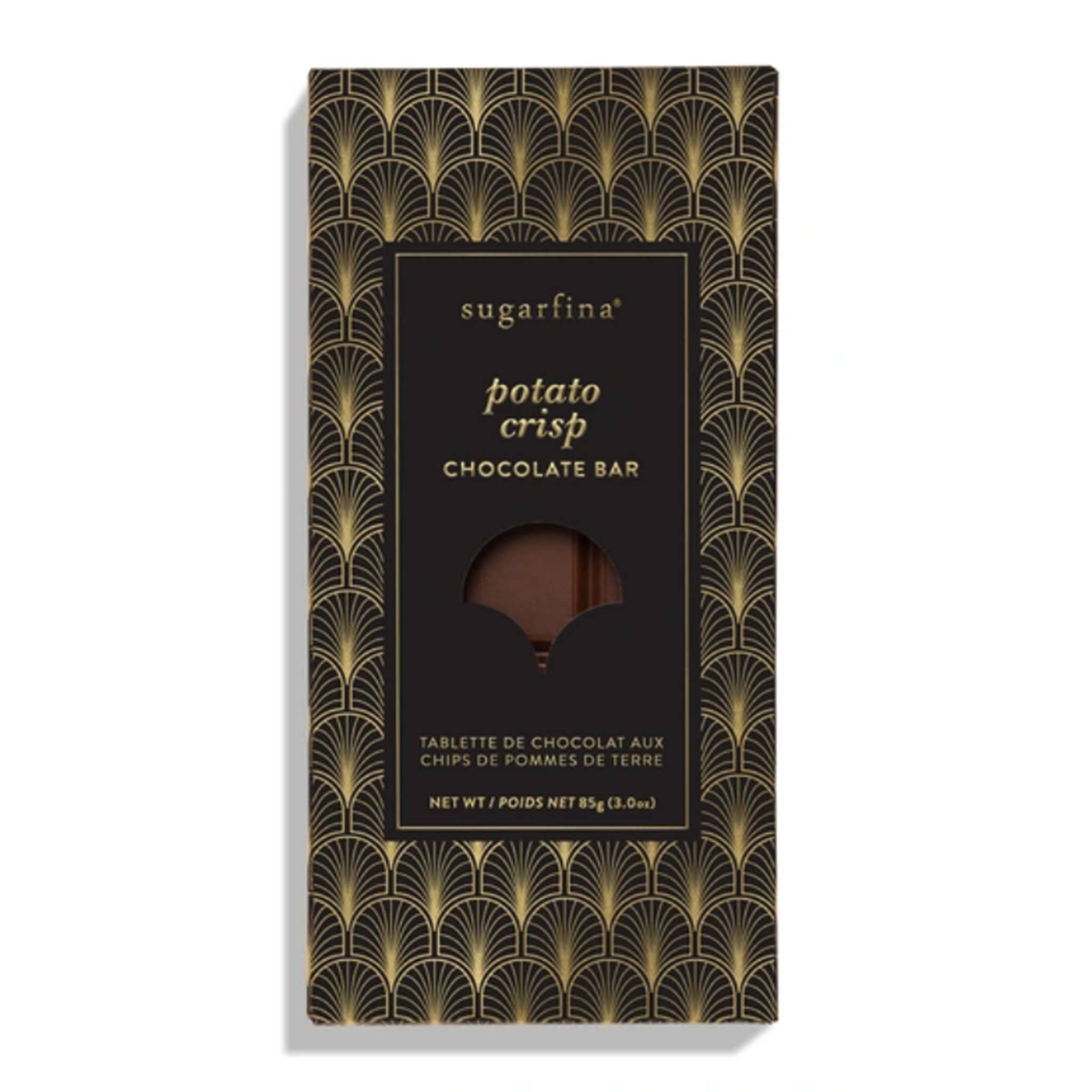 Simple yet luxurious, treat yourself to an indulgence like no other with the Potato Crisp Chocolate Bar from Sugarfina. Creamy chocolate is mixed with pieces of salted and crispy potato chips for a perfect blend of savory and sweet. One bite is never enough! Wrapped in a special navy blue and gold Art Deco holiday box, this 3 ounce gourmet chocolate bar makes the perfect Hanukkah treat or stocking stuffer. Kosher, made without GMO's and no artificial colors or flavors.