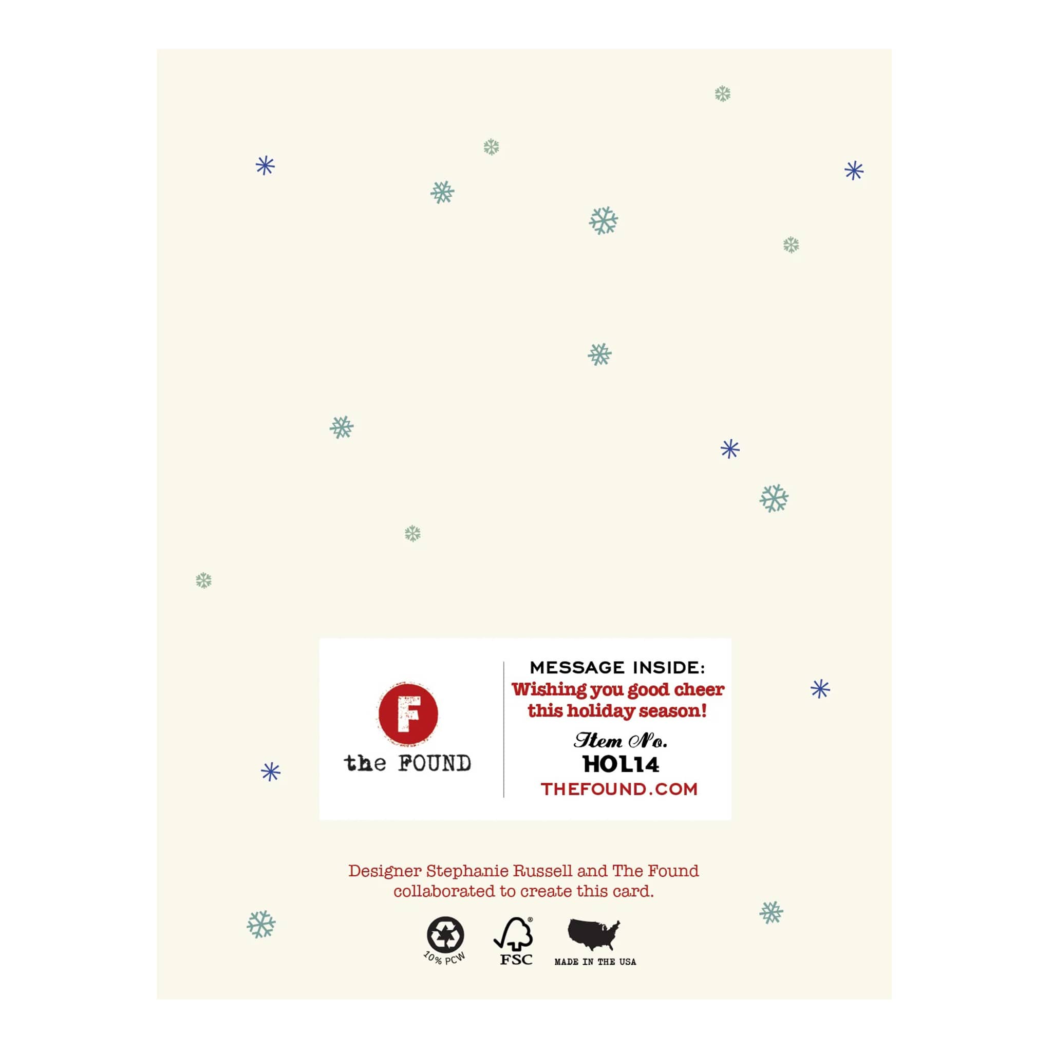 Printed in the USA on recycled paper from an FSC-certified mill with soy-based inks. Set of 8 boxed cards with vibrant red envelopes. Card dimensions are 4.25 x 5.5 inches.