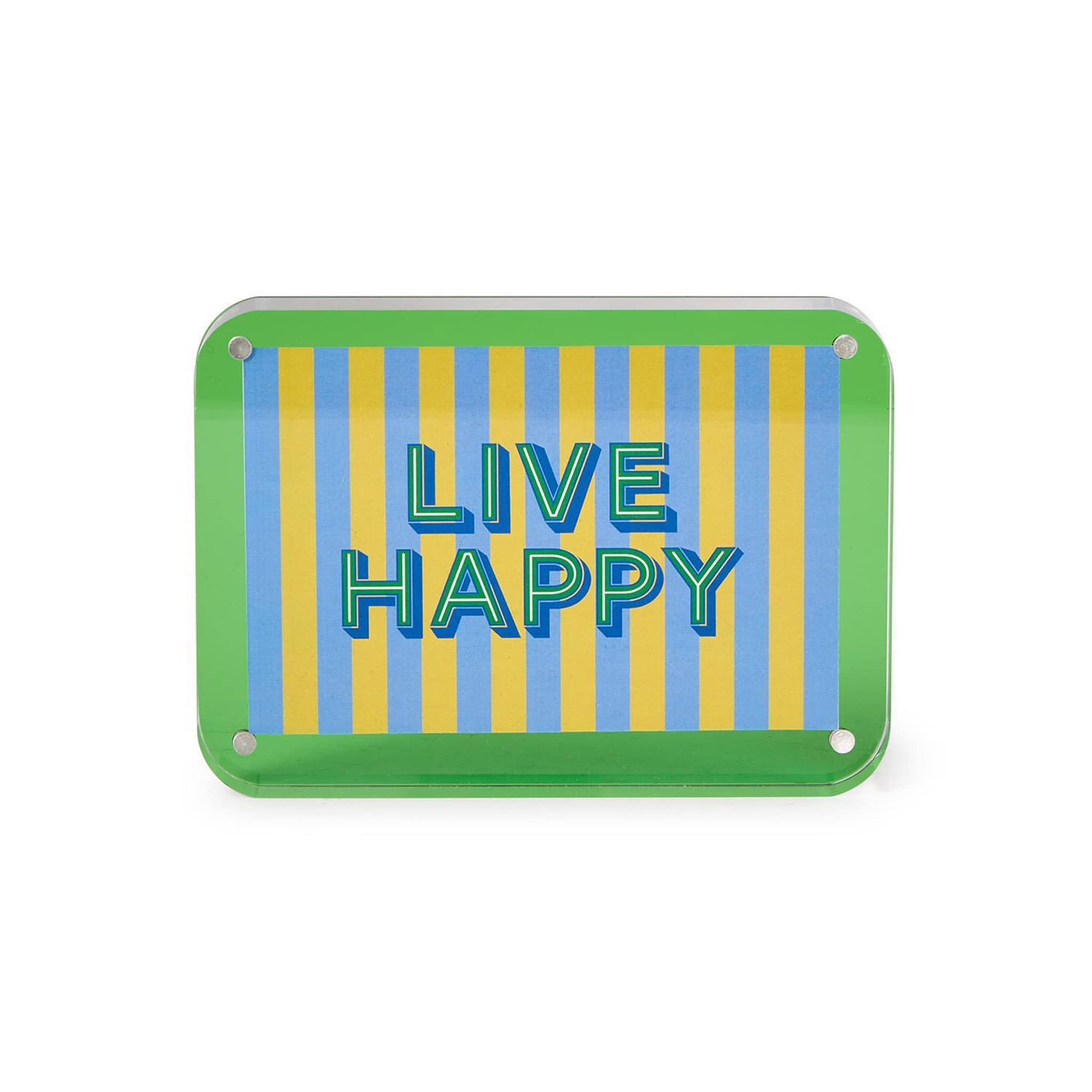 Display your favorite photos in style with this Green Color Pop Acrylic Frame. Handcrafted from durable, premium acrylic, this frame comes with an insert that says "Live Happy". It features a magnetic border with four industrial-strength magnets to securely hold your cherished pictures, tickets, invitations or dried flowers, making it perfect for showcasing your favorite memories. The self-standing photo frame can stand vertically or horizontally. Outer dimensions are 5 x 7 inches, holds a 4 x 6 inch photo or artwork.