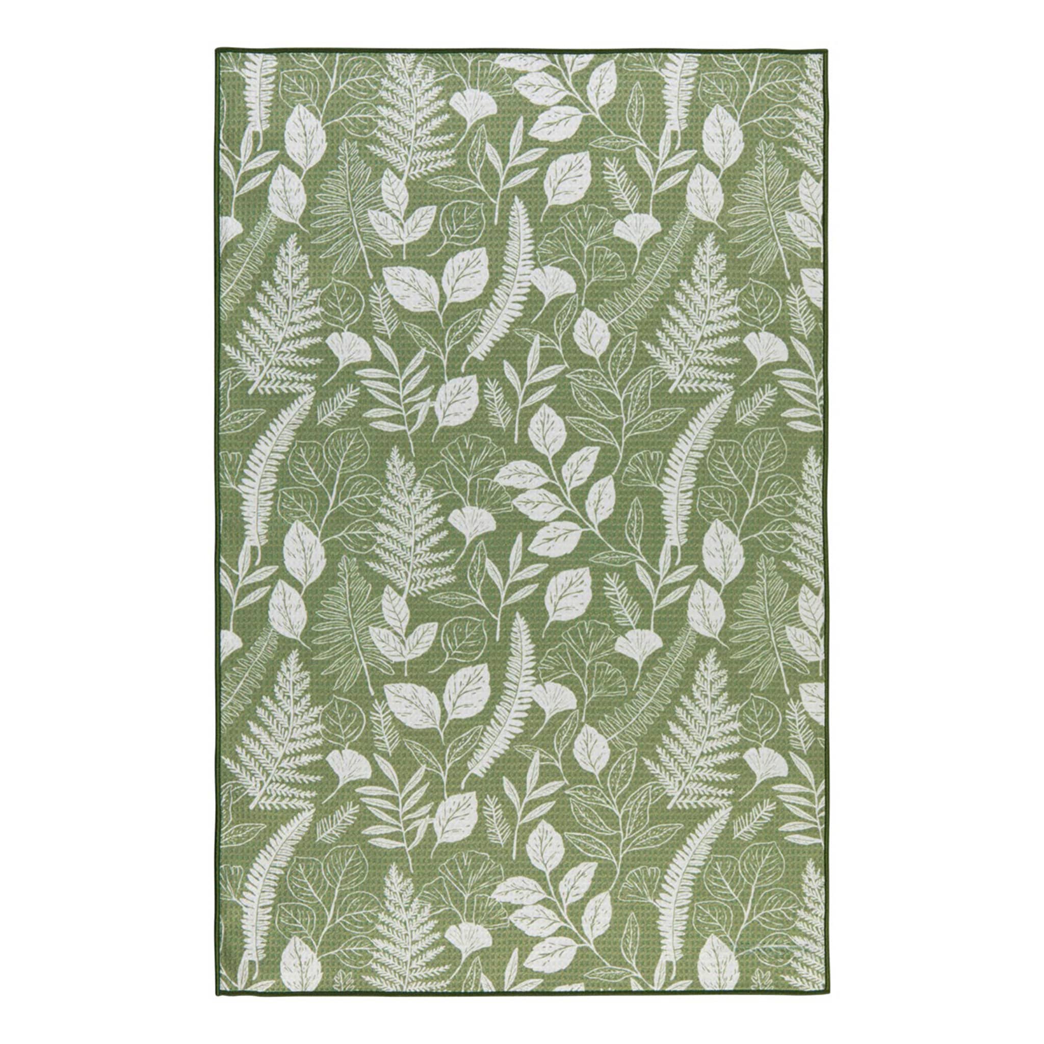 Dry off the dishes and dress up the kitchen with the soft and versatile microfiber Fern & Frond Dish Towel. A lush ode to nature, the Fern & Frond print features layered leafy botanicals in earthy green and soft cream. A combination of organic elegance with modern color blocking for year-round beauty. The kitchen towel measures 18 x 28 inches and is made from 80% recycled polyester and 20% polyamide. Care instructions: Machine wash warm, tumble dry on low setting.