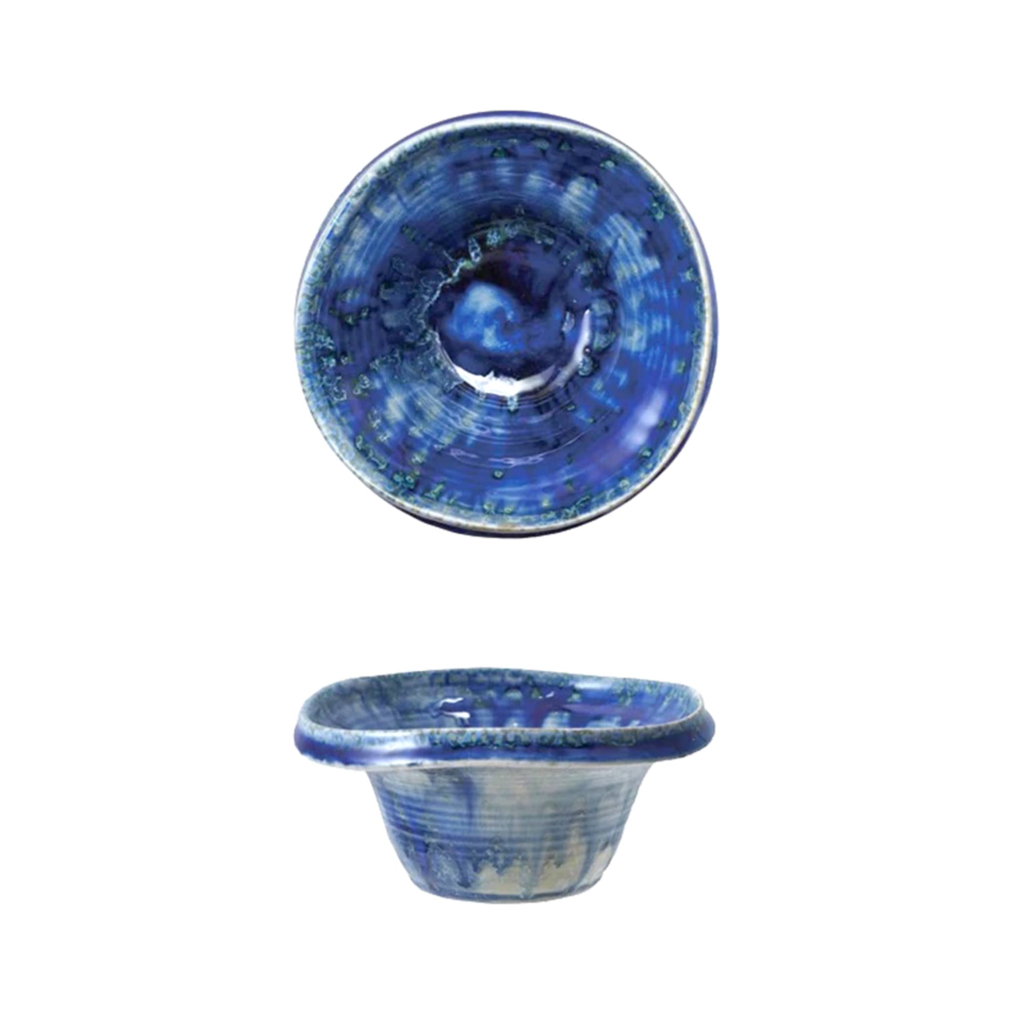 Add artisanal texture to your table with this round, organically shaped Stoneware Footed Bowl. Finished in a blue reactive crackle glaze, each piece develops its own one-of-a-kind pattern and subtle color variation, making no two bowls exactly alike. The softly irregular silhouette and raised foot give it a handcrafted, modern-rustic feel that works beautifully in both casual and styled settings. Measuring approximately 5.75 inches in diameter and 2.5 inches tall, it’s perfectly sized for snacks, desserts, condiments, or small decorative displays. A timeless, versatile piece that brings character and craftsmanship to everyday use.