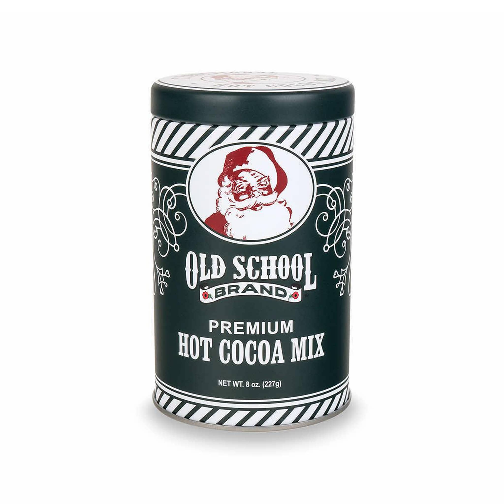 For generations, celebrations at Christmas and winter holidays were not complete without mugs of hot cocoa and peppermint sticks. Keep the tradition alive with this delicious premium hot cocoa mix from Old School Brand. This traditional hot cocoa with a rich milk chocolate flavor is packaged in a printed green and white metal canister with a Santa Claus illustration. Pair it with the Old School Peppermint Stick Candy for the perfect host/hostess or holiday gift for all ages! 9-ounce tin measures 2.875 inches in diameter x 4.75 inches tall. Made in the USA by a family-owned business based in North Carolina.