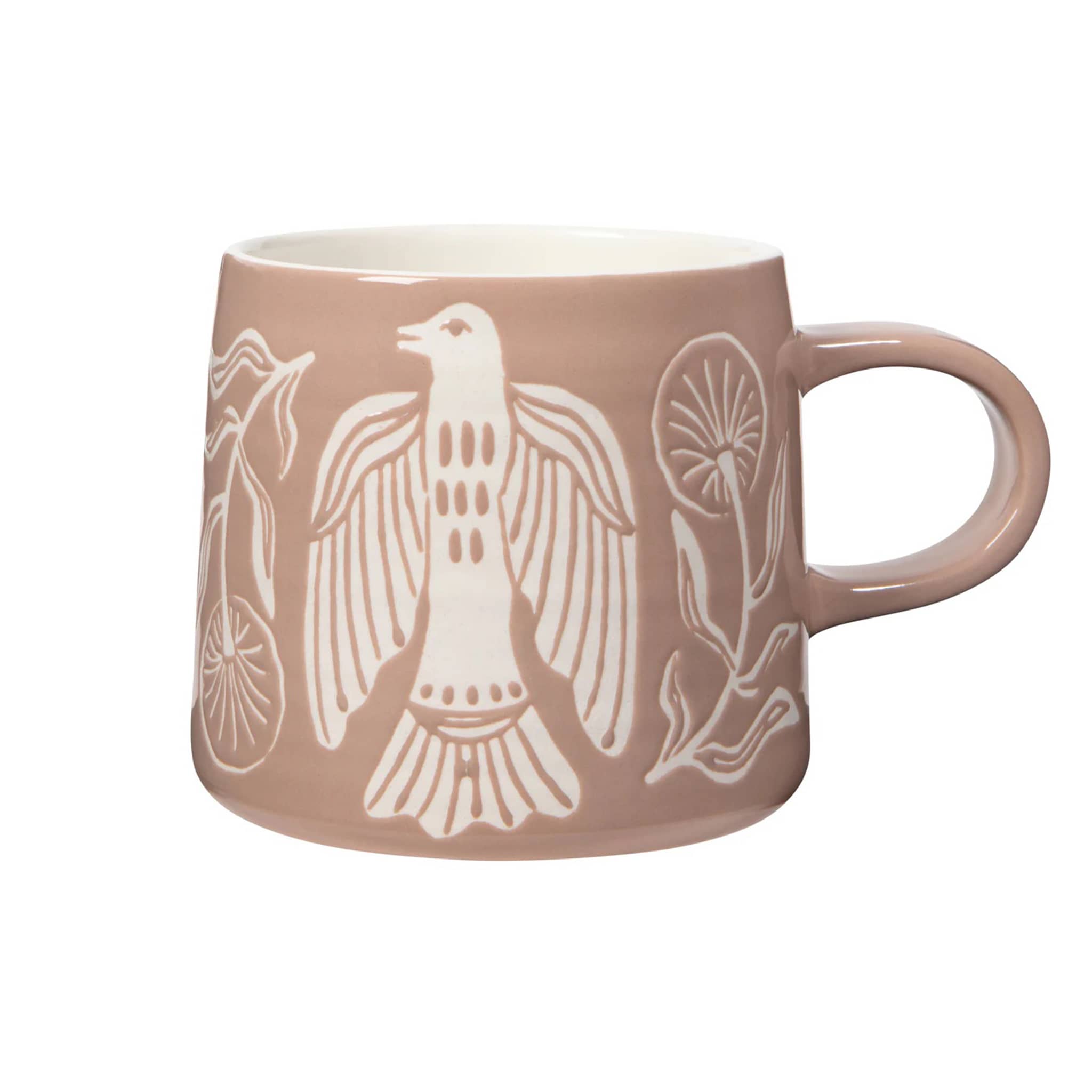 Peregrine's majestic birds of prey bring natural elegance to your home. With an earthy tone and organic texture, this mug captures the splendor of powerful wings soaring over fields of wild blooms—elevating everyday moments with bold yet graceful beauty. Mug measures 4 inches in diameter x 3.5 inches tall. The 14-ounce mug is made from 100% stoneware and is dishwasher and microwave-safe.