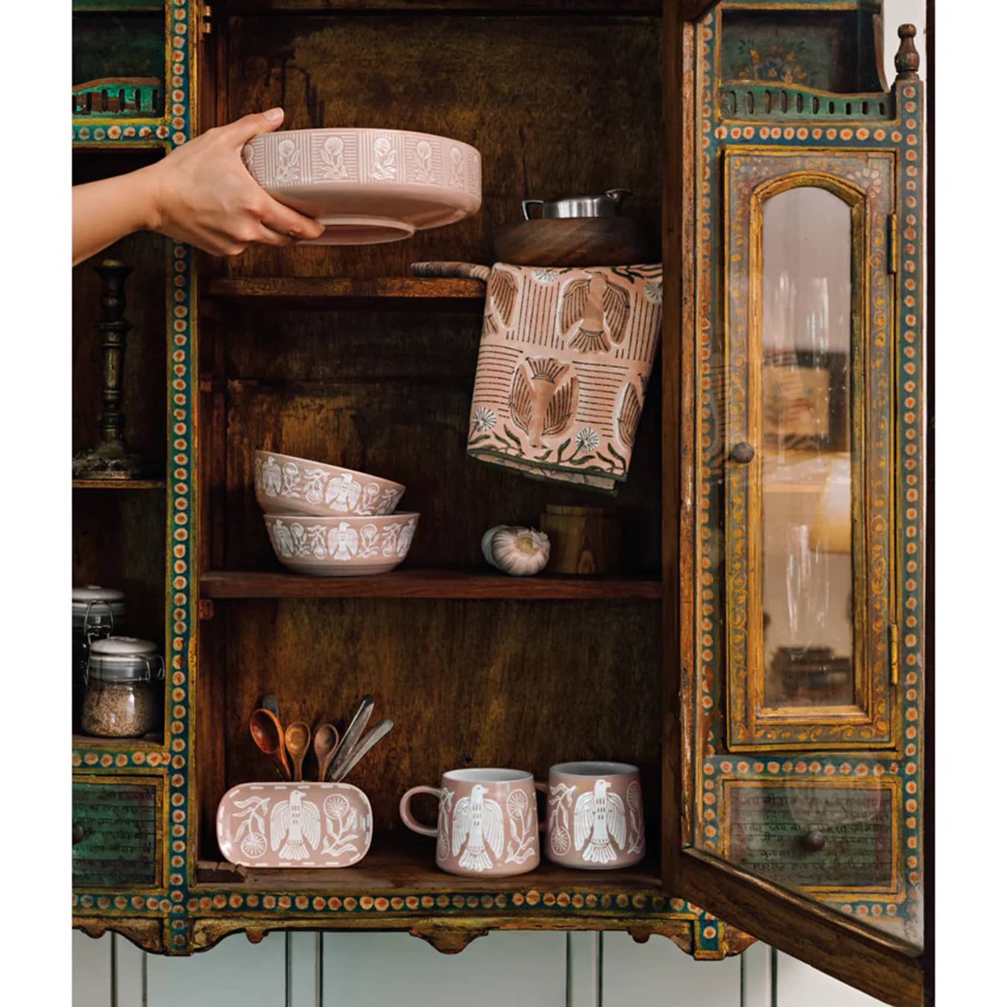 Crafted with a special wax-resist technique, the Peregrine Imprint Mug features its own distinct pattern. A textured design and rich glazing enhances the tactile appeal, making every sip a sensory experience.
