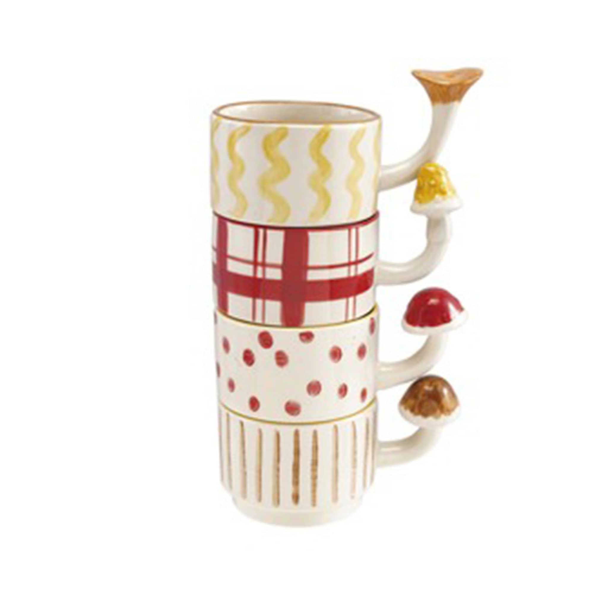 Add a little woodland whimsy to your daily routine with this charming white stoneware mug, featuring a delightfully unique mushroom-shaped handle. Crafted from durable stoneware, it pairs a clean white base with playful patterns—choose from tan vertical stripes, cheerful red dots, cozy red plaid, or sunny yellow wavy lines. The sculptural mushroom handle adds a fun, tactile detail that makes every sip feel special. Perfect for coffee, tea, or hot cocoa, this eye-catching mug blends cottagecore charm with everyday functionality and makes a sweet gift for nature lovers and design fans alike.
