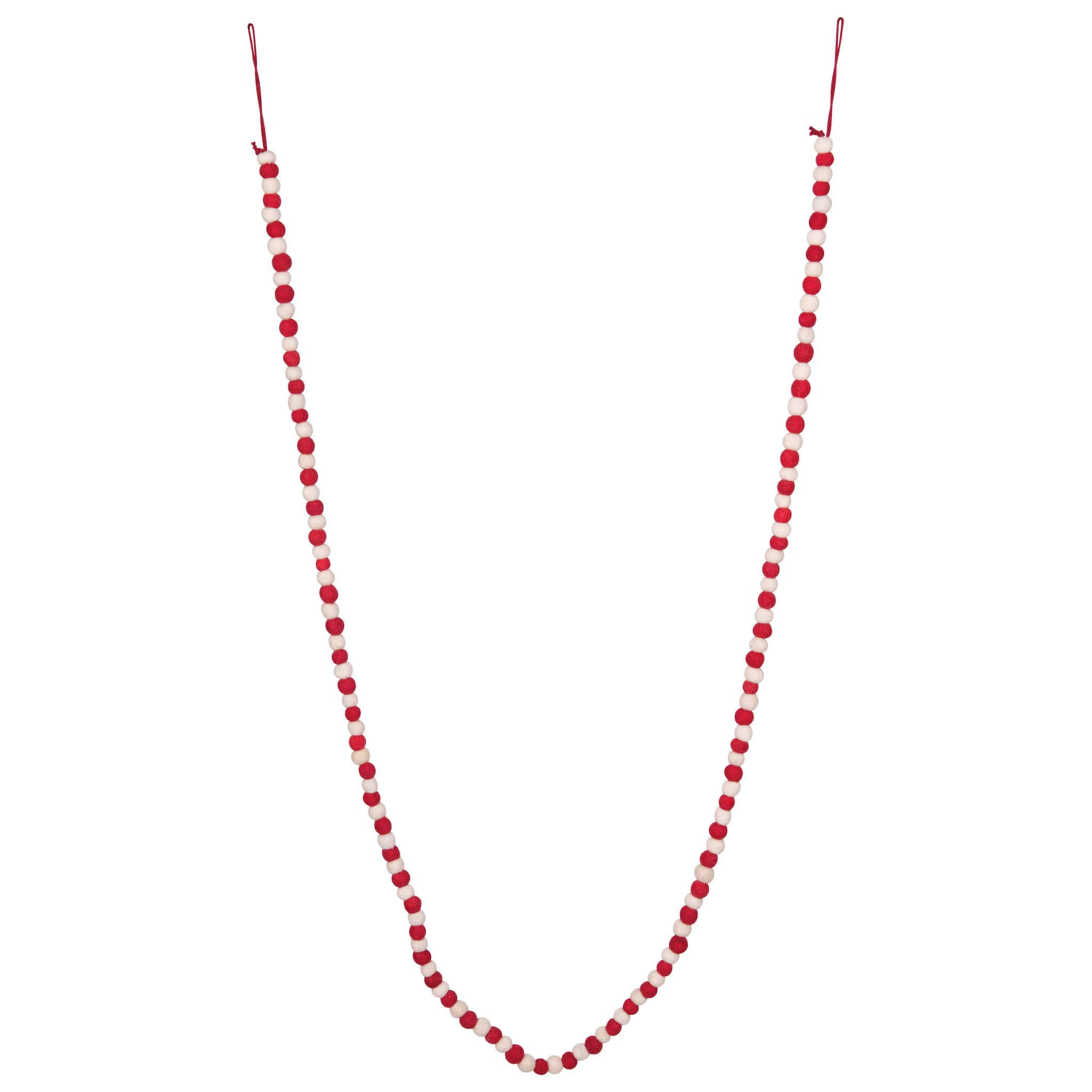 Red and white wool felt balls alternate to create this classic holiday garland. It's the perfect way to add holiday cheer by hanging on a tree, framing a doorway, decorating the surface around a centerpiece or wrapping around a staircase. It's an easy and beautiful way to add a festive touch to any decor. Measures 72 inches long, balls are 0.50 inches in diameter.