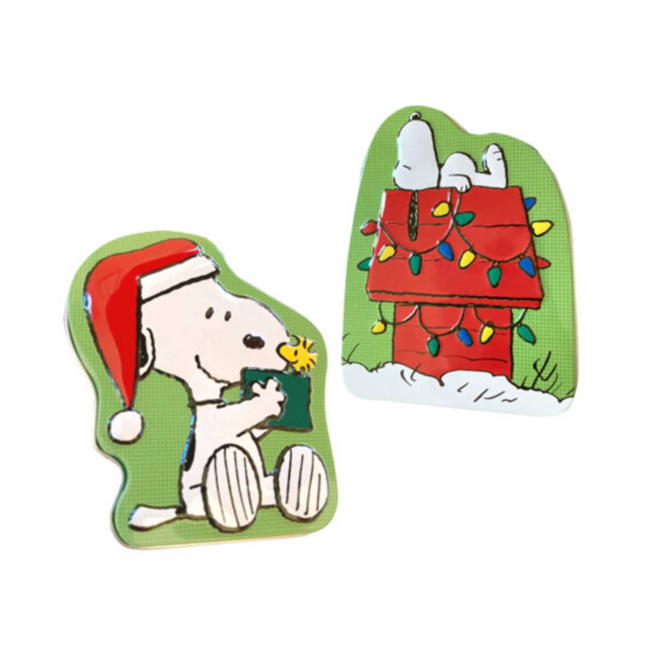 The Peanuts "Christmas is Giving" collectible candy tin holds 1 ounce of tangy sour green apple flavored candy. Available in 2 styles, Snoopy with Woodstock or Snoopy on his decorated dog house. Great for stocking stuffers or party favors, once the candy is gone, the tin can be repurposed for storing trinkets.
