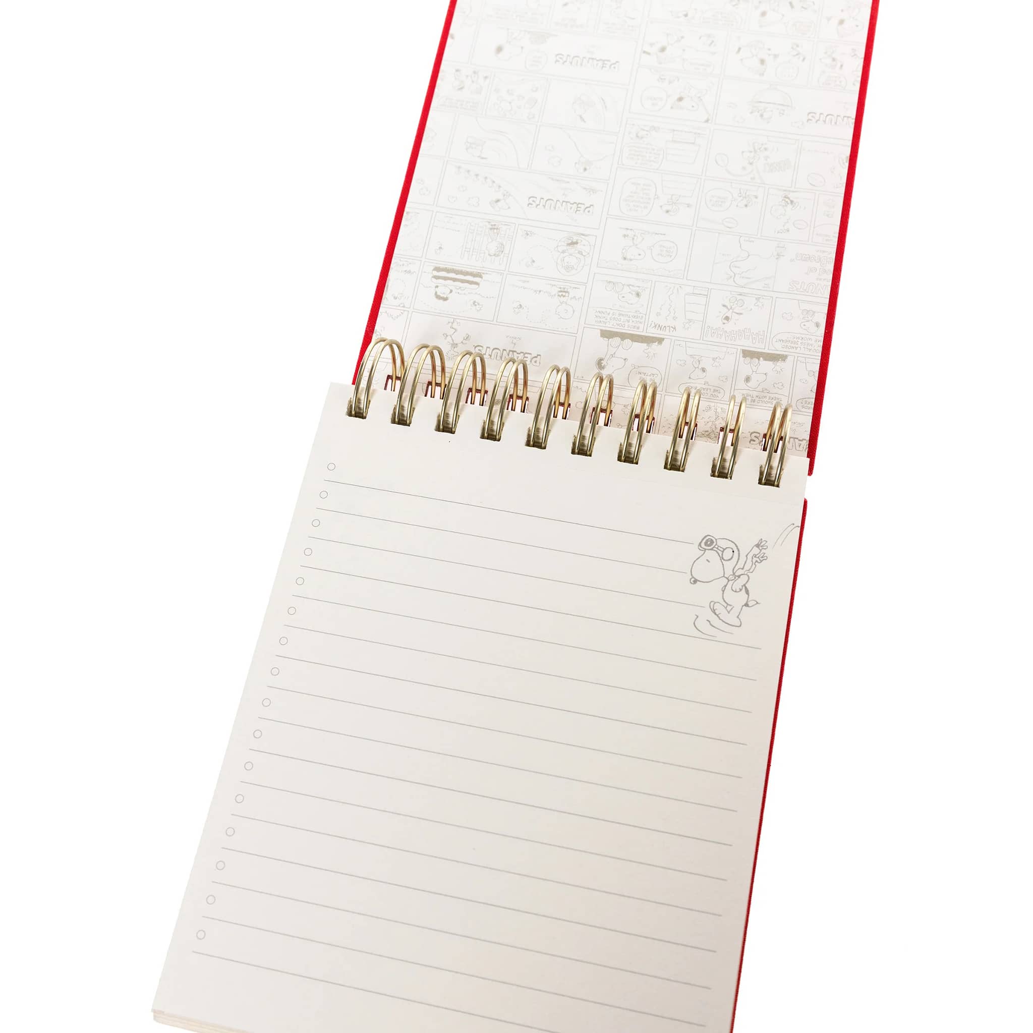 Say hello to the Luxe Spiral Jotter, your go-to for jotting brilliance in style! We're loving this new Peanuts® notebook, featuring a soft red fabric-wrapped hard cover with Snoopy on his typewriter in gold foil. Whether sketching ideas, scribbling notes, or doodling during a call, this luxe jotter has you covered. It's the perfect way to give even notes or to-do lists a little glow-up. Toss it in your bag or flaunt it on your desk, it’s ready to keep up with your fabulous life!