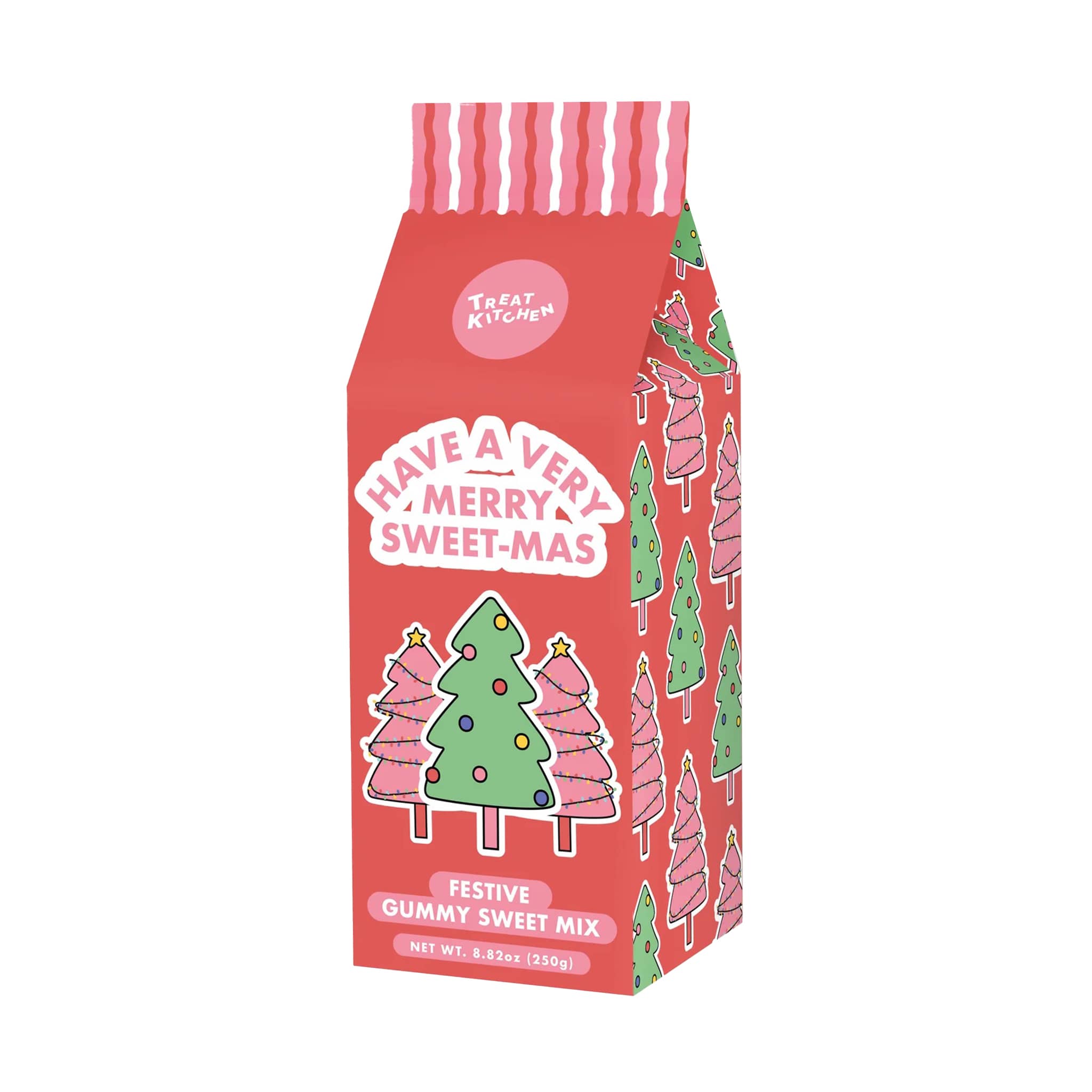 Bring festive cheer to your holiday gifting with this Festive Gummy Sweet Mix! The adorable red milk carton packaging is filled with 8.82 ounces of delicious tree-shaped fruity gummy sweets. Featuring the cheerful message “Have a Very Merry Sweetmas,” this charming candy makes a perfect Christmas gift, stocking stuffer or Secret Santa gift for friends, family, or colleagues.