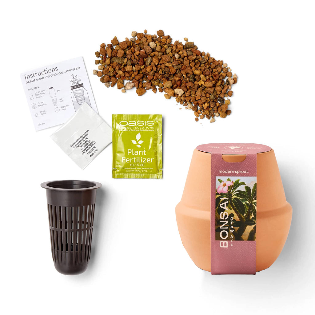 Create your own sunbaked oasis at home with this Bonsai Terracotta Grow Kit, designed to take budding plant parents on a growing journey inspired by the southwest. Kit features a terracotta planter with a water-tight glazed interior and a hydroponic setup that delivers nutrients directly to the roots. Cultivate an indoor oasis all year long, just add water! Makes a great gift for both novice and seasoned plant people.