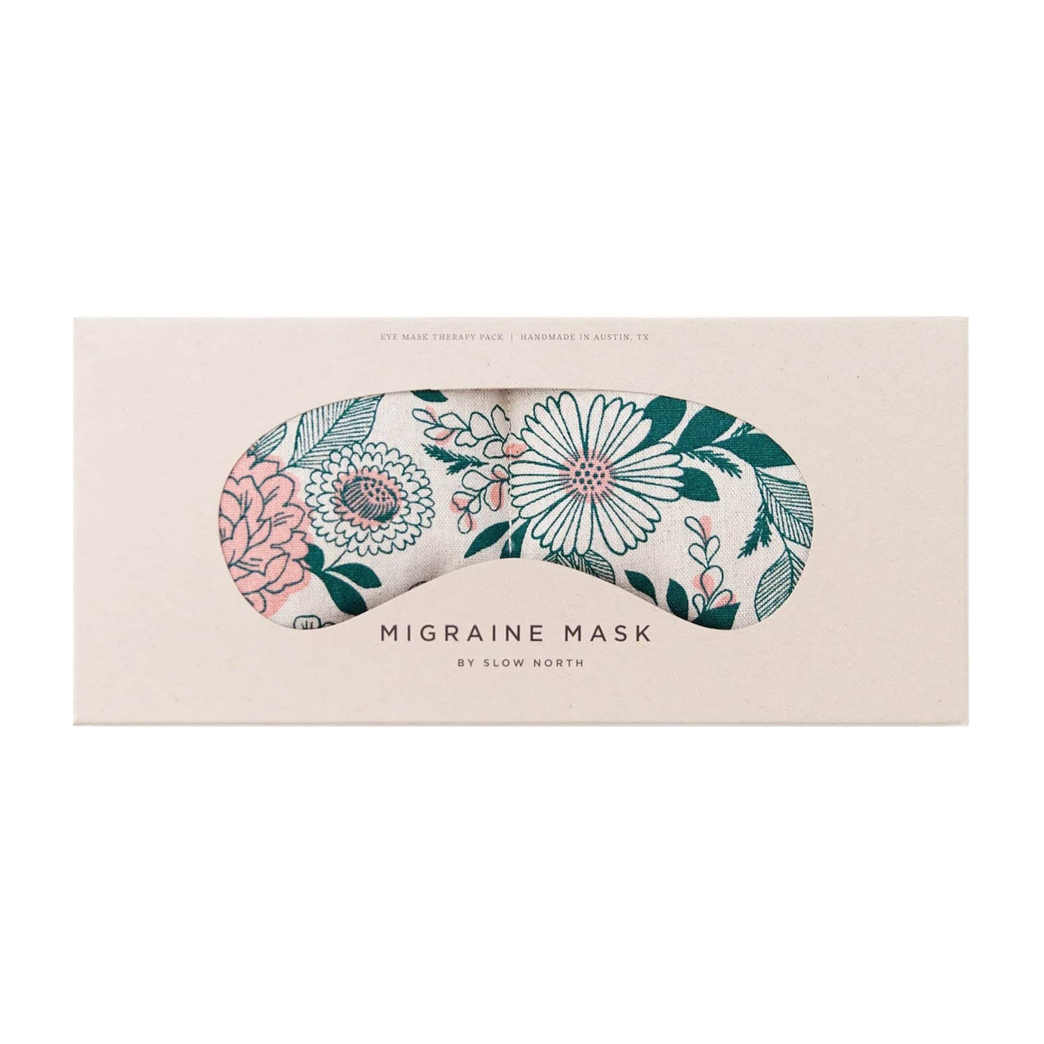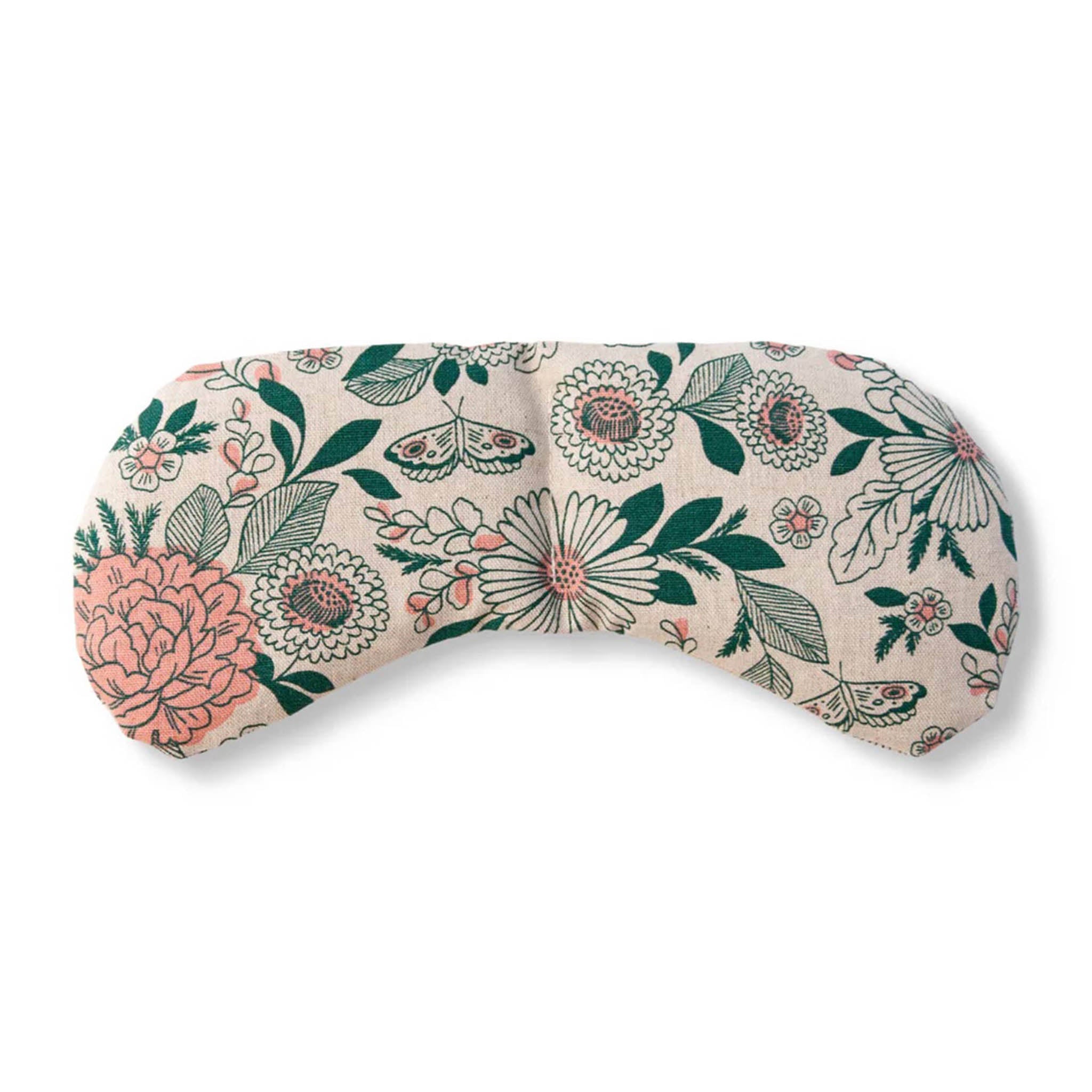 A beautiful floral print covers this stress-relieving eye mask, transporting you to a flower-filled garden. The Migraine Relief Eye Mask Therapy Pack eases your mind, lifts your spirits, and soothes tension. Relieve headaches and tired eyes, also great for meditation as a weighted eye pillow. Features the Hidden Falls print with pops of pink and green that dance around peonies, butterflies, and lush leaves to soothe away your stress. Made by hand in Austin, TX from 100% cotton and linen fibers and filled with natural, unscented lentils for weight. Can be used for hot or cold therapy, the mask is strap-free and rests in place for ultimate comfort. Dimensions of the mask are 9 x 4 x 0.5 inches.