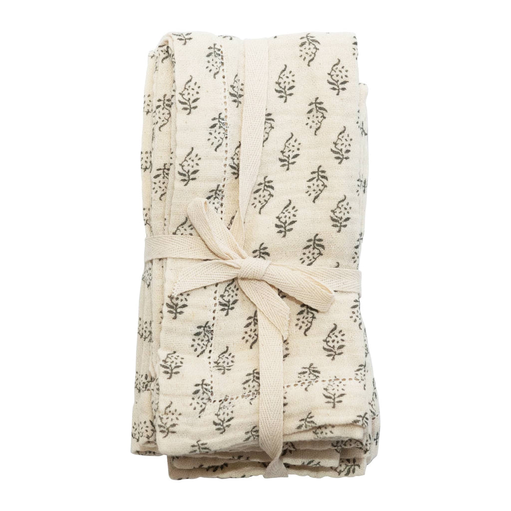 Natural Cotton Napkins with Gray Floral Print (Set of 4)