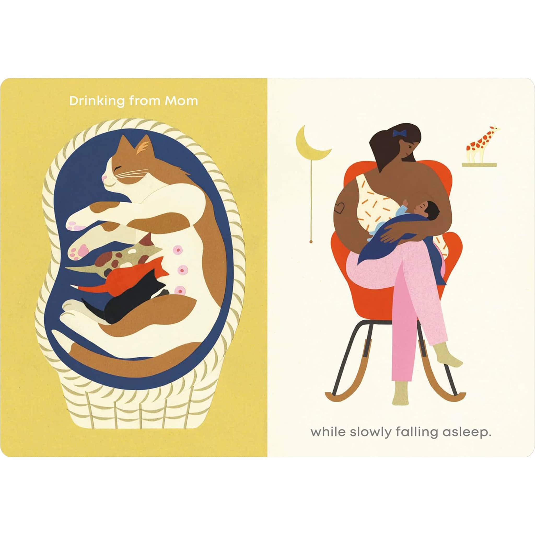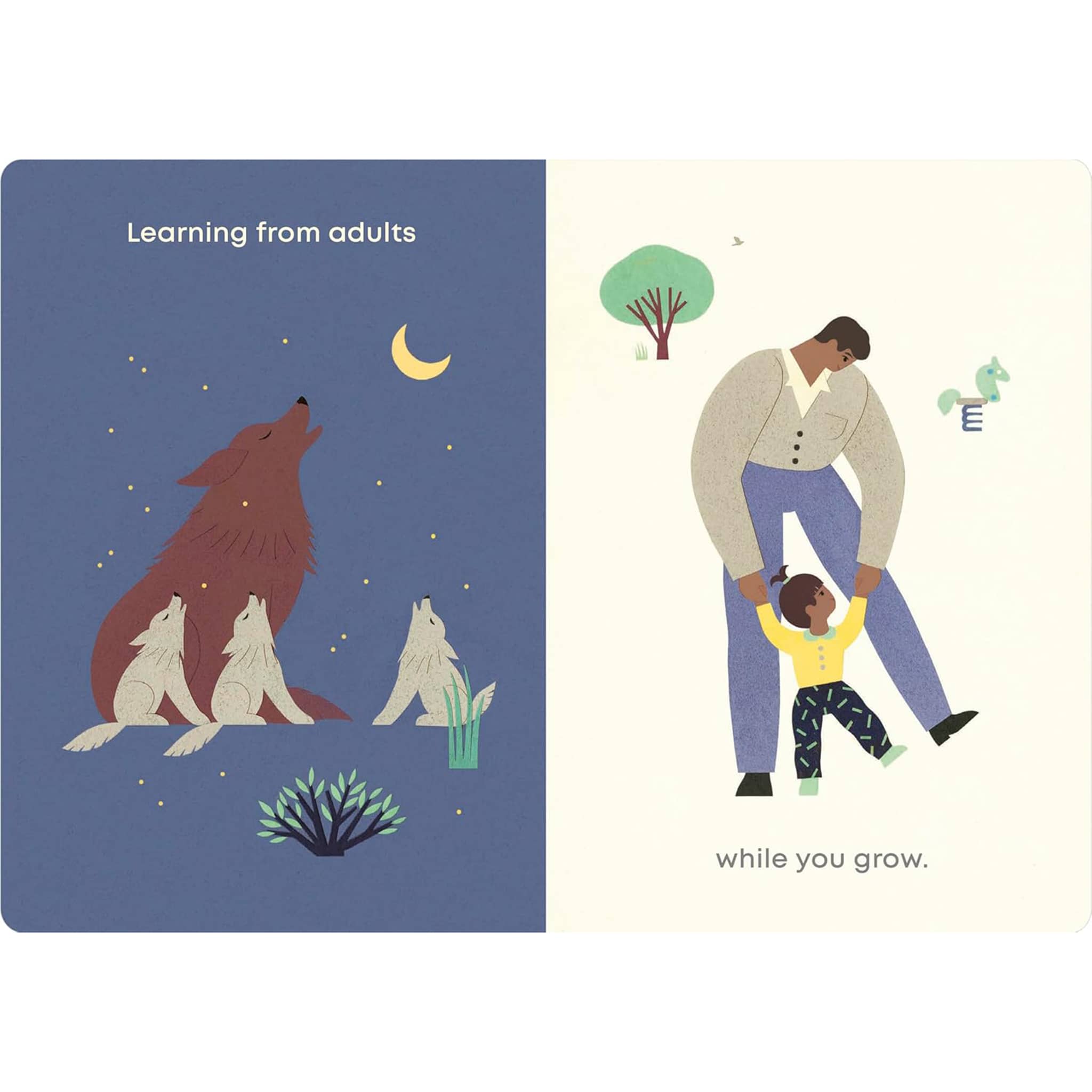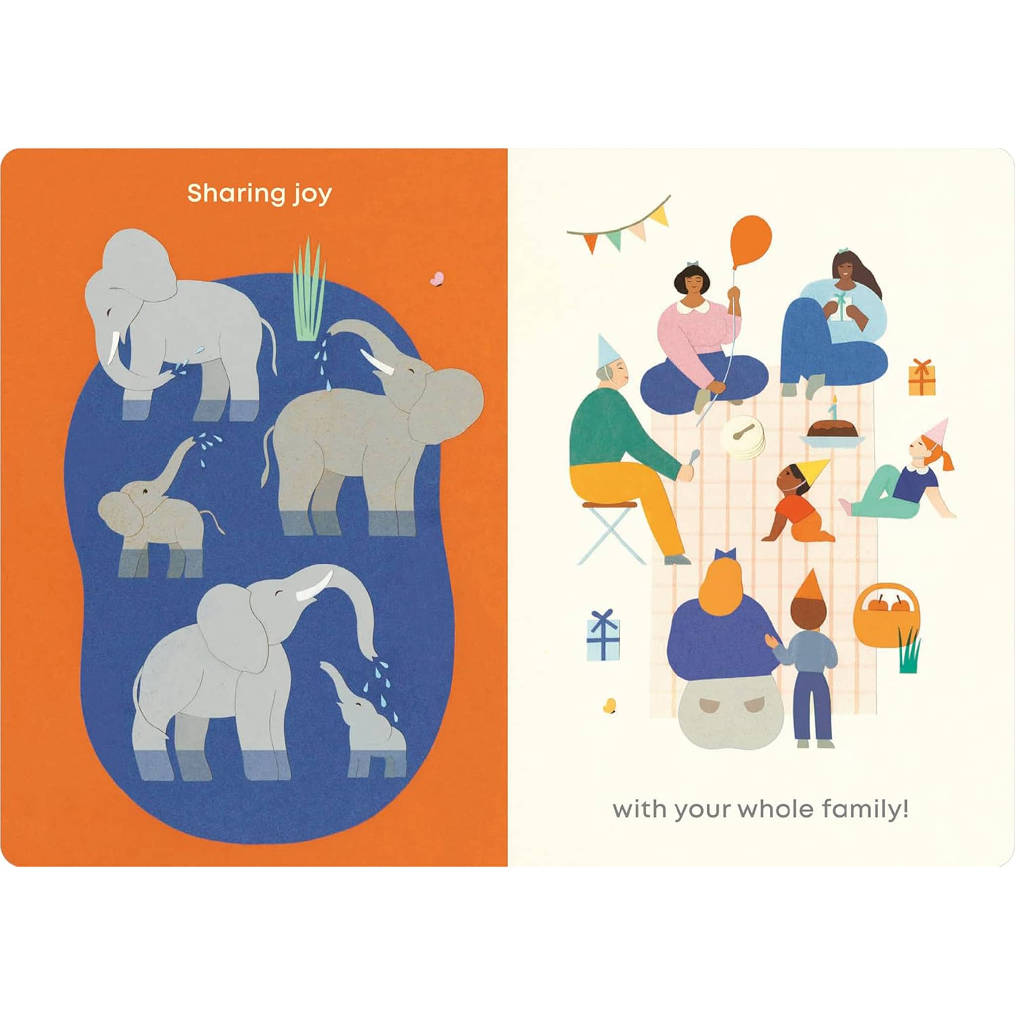Playing, loving, cuddling, growing up, and discovering the world… A little one’s life is full of joyous moments! This beautiful board book showcases a few of those special moments and how they may be paralleled by animals and humans. Simple joys like taking a bath, smelling a flower, discovering a new food, or playing with siblings are carefully curated into this collection of “firsts” that everyone can celebrate.