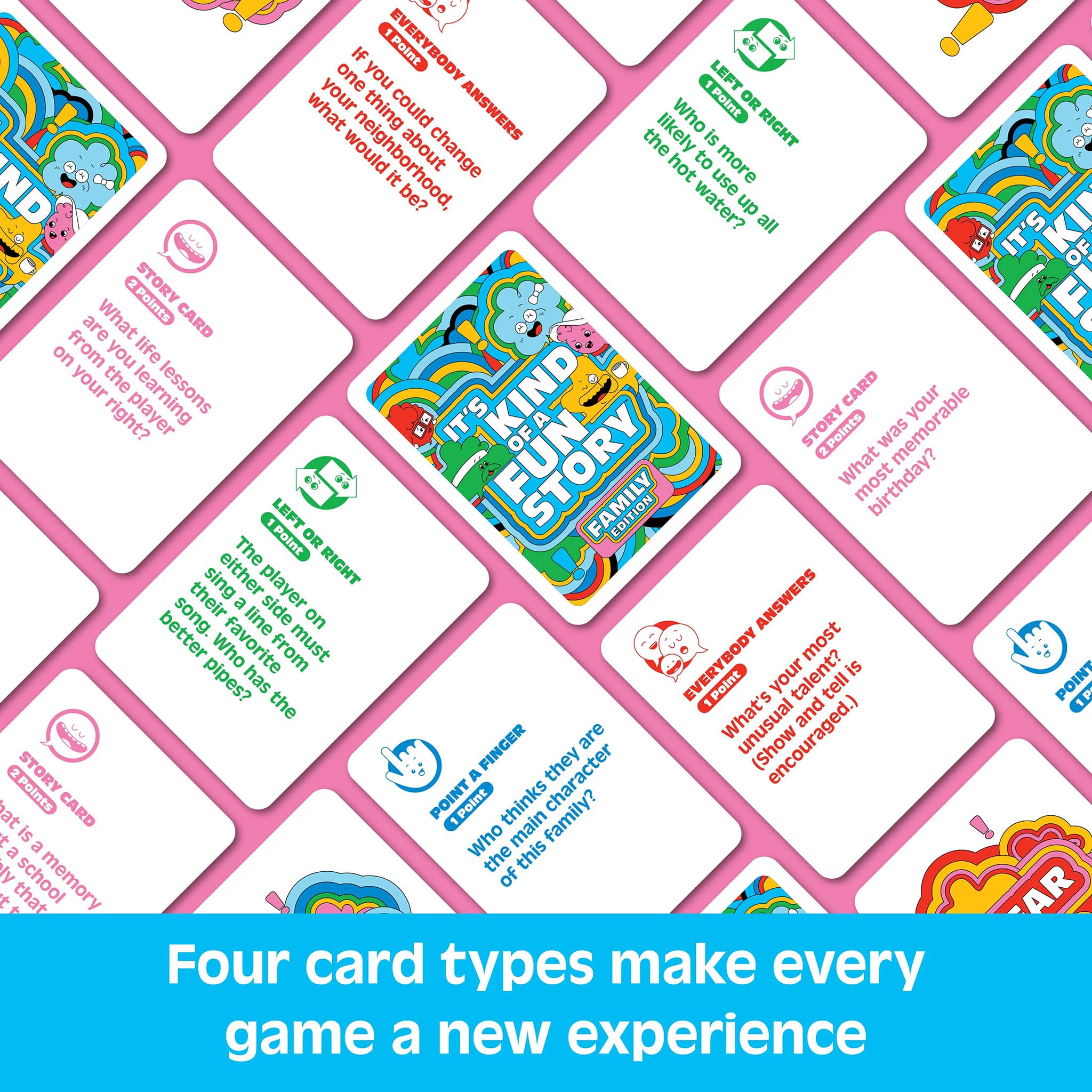 Skip the small talk and let the hilarious moments unfold with It’s Kind of a Fun Story: Family Edition, the family and conversation game where the story of your life earns you points.