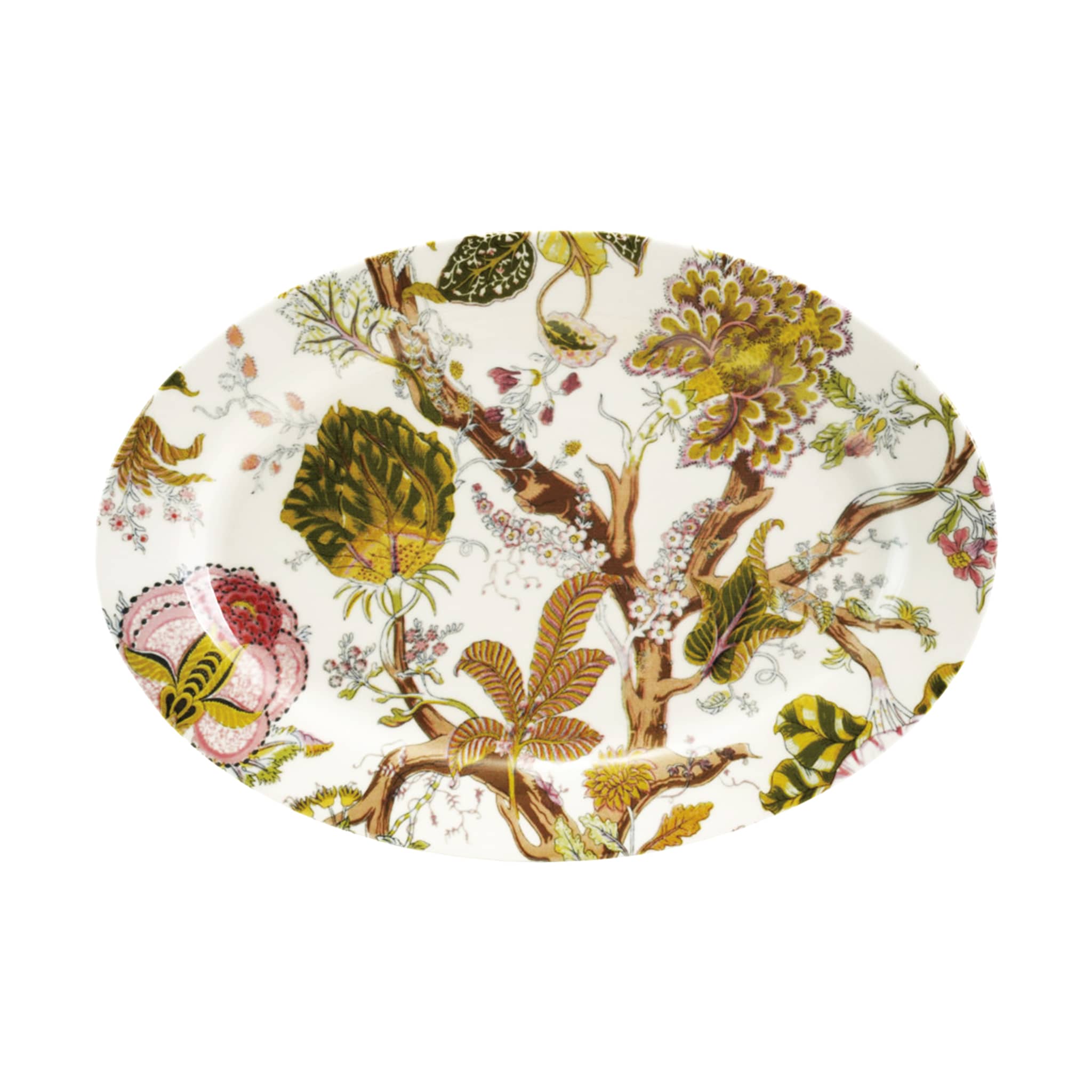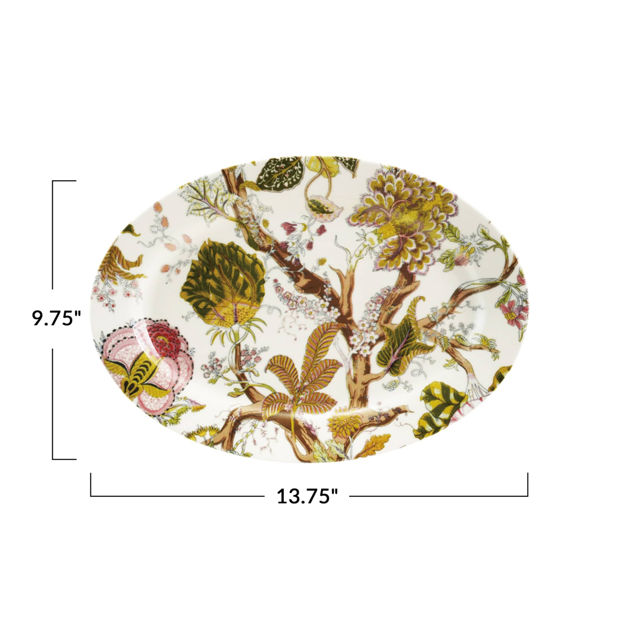 Bring a fresh, garden-inspired touch to your table with this Botanical Oval Stoneware Serving Platter. Featuring a detailed botanical print in soft shades of green, pink, and brown, it adds natural charm and understated elegance to everyday meals and special gatherings alike. Crafted from durable stoneware, this platter is ideal for serving appetizers, main dishes, or desserts while making a beautiful statement on your table or buffet. A versatile piece that blends effortlessly with both casual and elevated table settings. Microwave and dishwasher safe. Measures 13.75 x 9.75 inches.
