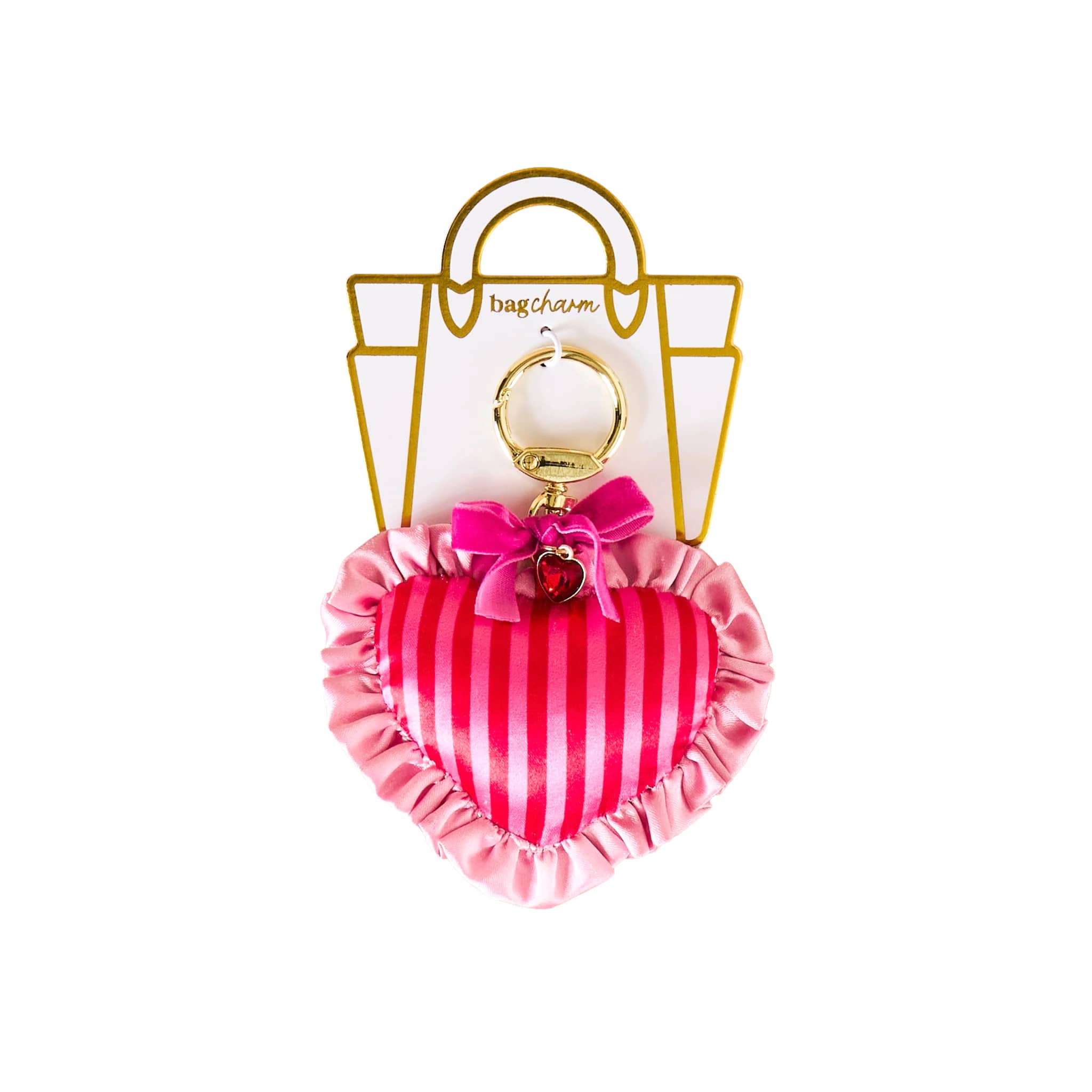 Add a little love to your everyday look with the Puffy Heart Bag Charm in Heartthrob! This sweet, lightweight heart features a charming ruffled edge and a soft, puffy design in festive Valentine’s colors, adding just the right touch of romance and fun. Brings texture, dimension, and personality to any bag or keyring. Easily attach it to your purse, backpack, or tote with the gold clip for an instant style upgrade that moves with you. Durable yet feather-light, it’s perfect for on-the-go Valentine’s Day flair. The thoughtful mix of textures and finishes creates a luxe, layered look. Hangs 4 to 6 inches from most purses.